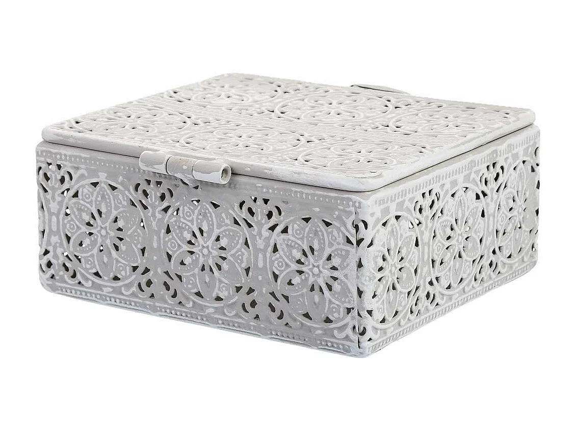 Boîte en métal blanc 12.5x12.5x6h cm (hauteur)