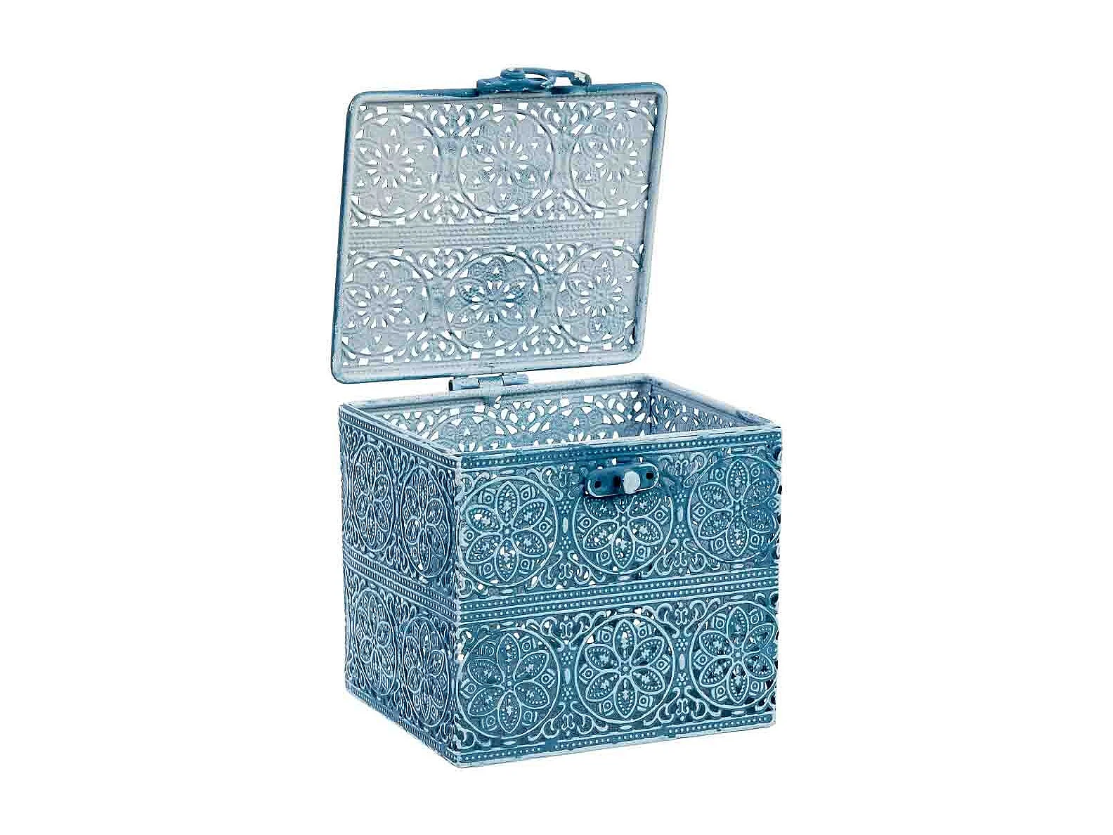 Boîte en métal bleu 12.5x12.5x11.5h cm (hauteur)