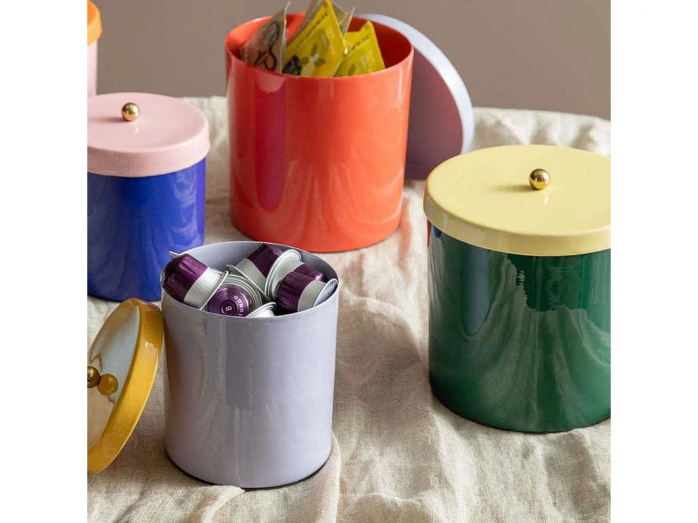 Boîte à riz en métal Vert et couvercle en bois déco Relief Color
