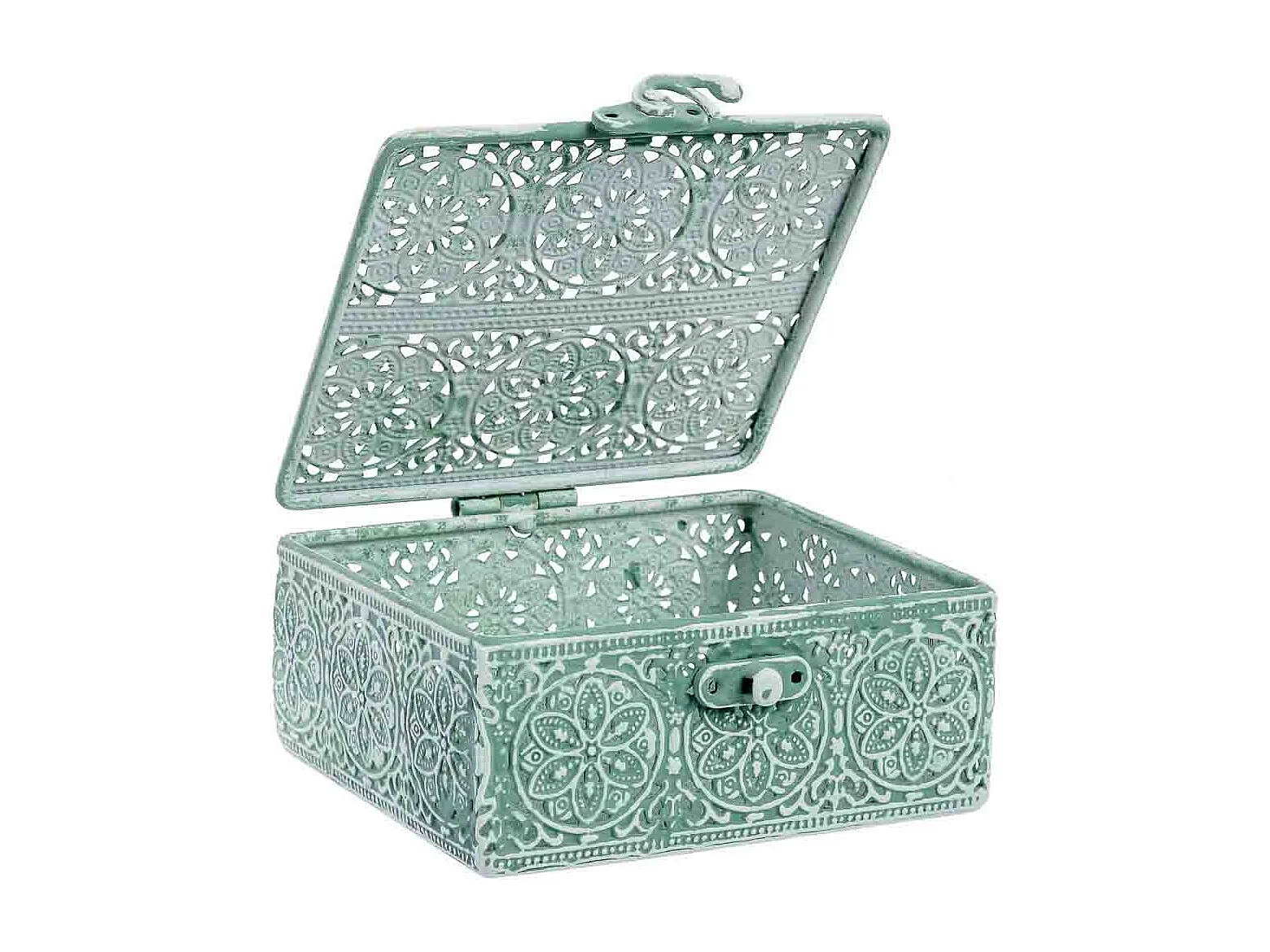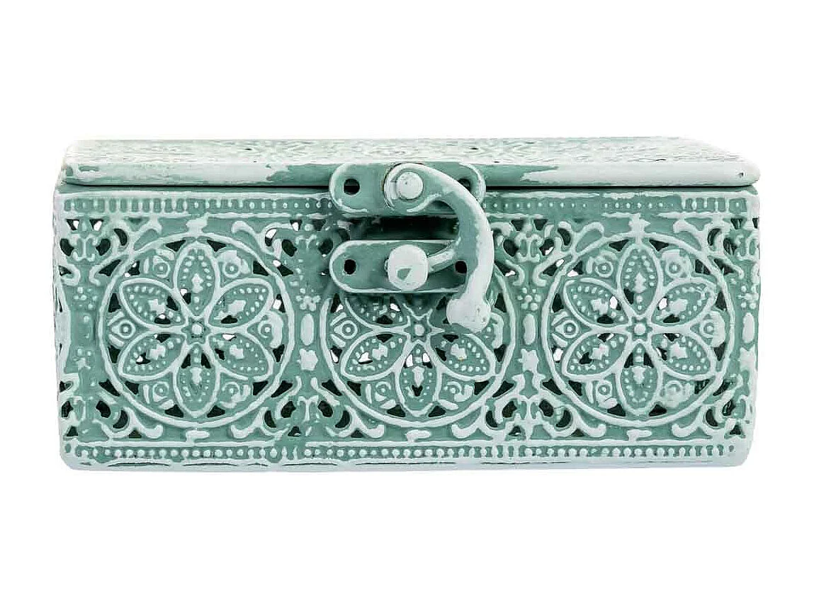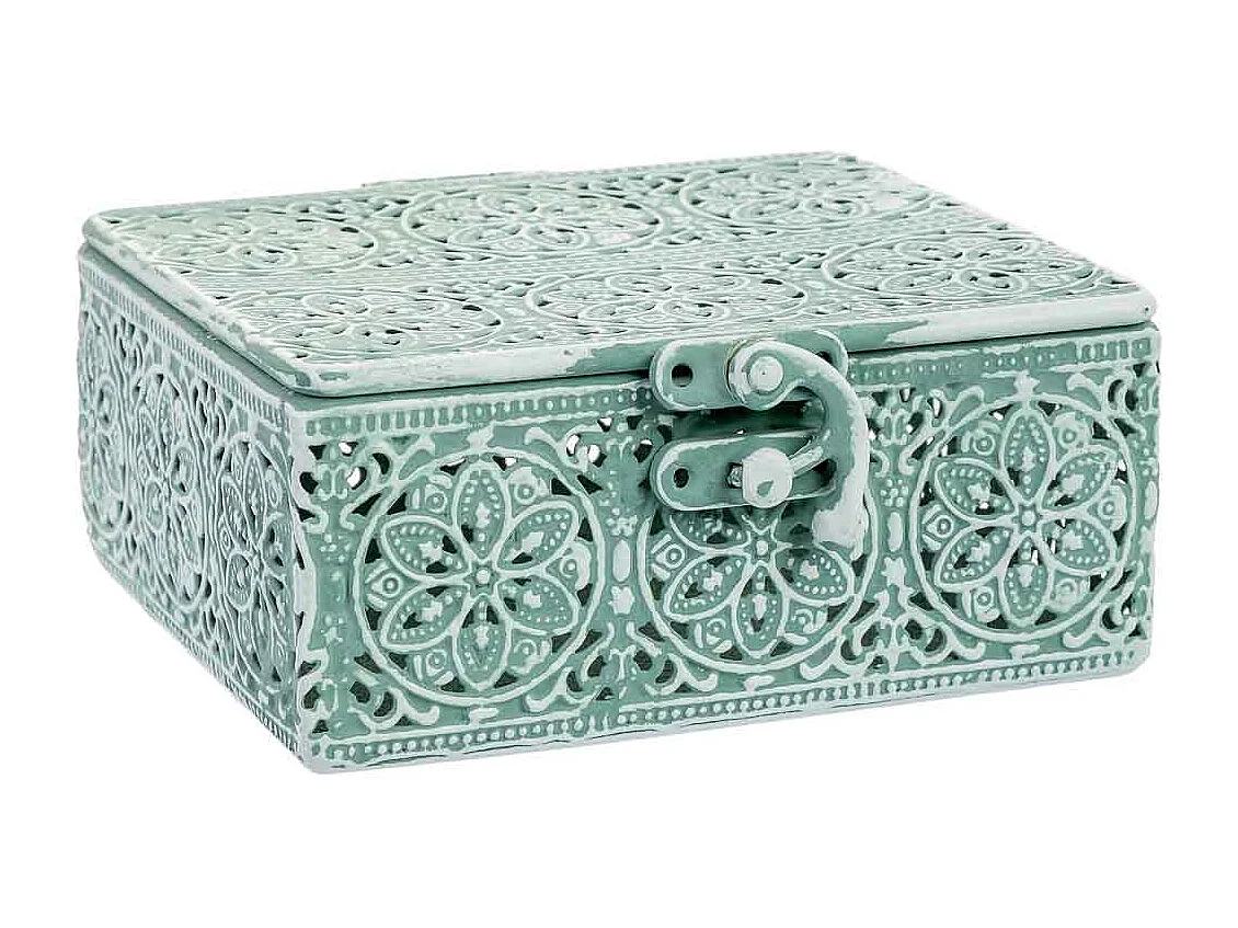 Boîte en métal vert 12.5x12.5x6h cm (hauteur)