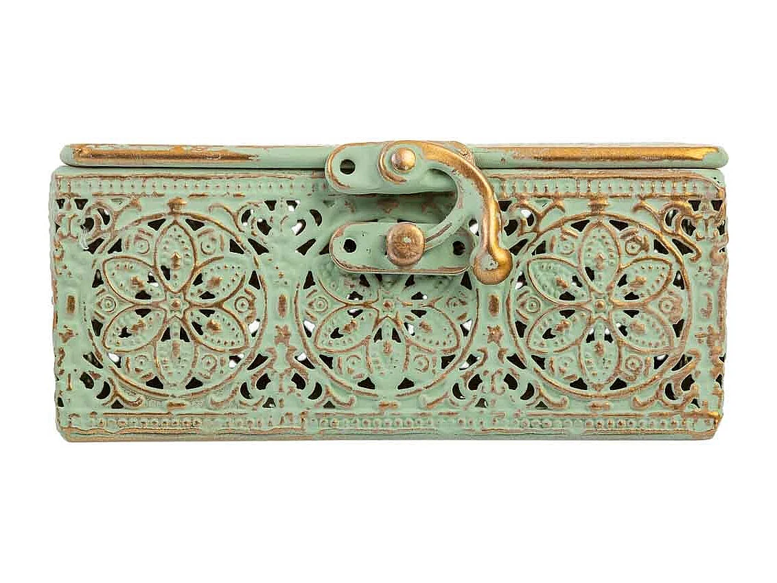 Boîte en métal vert 20.5x12.5x6h cm (hauteur)