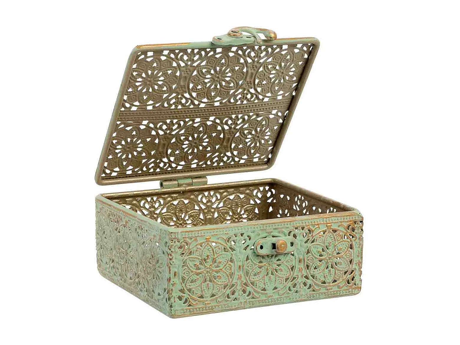 Boîte en métal vert 12.5x12.5x6h cm (hauteur)