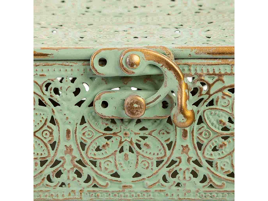 Boîte en métal vert 20.5x12.5x11.5h cm (hauteur)