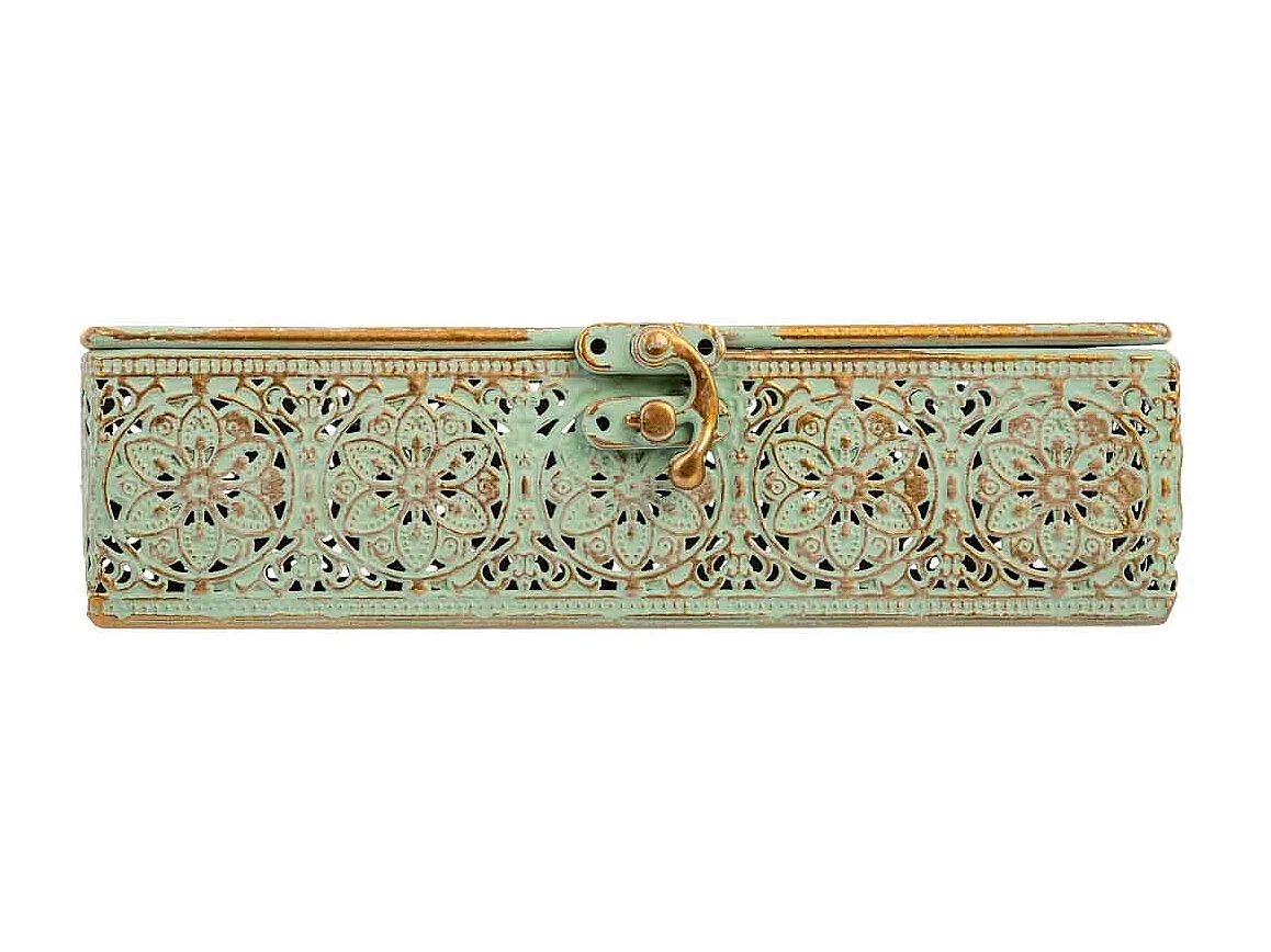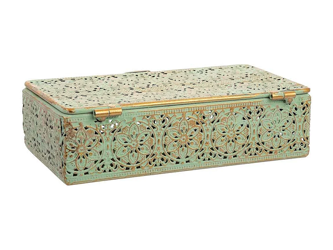 Boîte en métal vert 20.5x12.5x6h cm (hauteur)