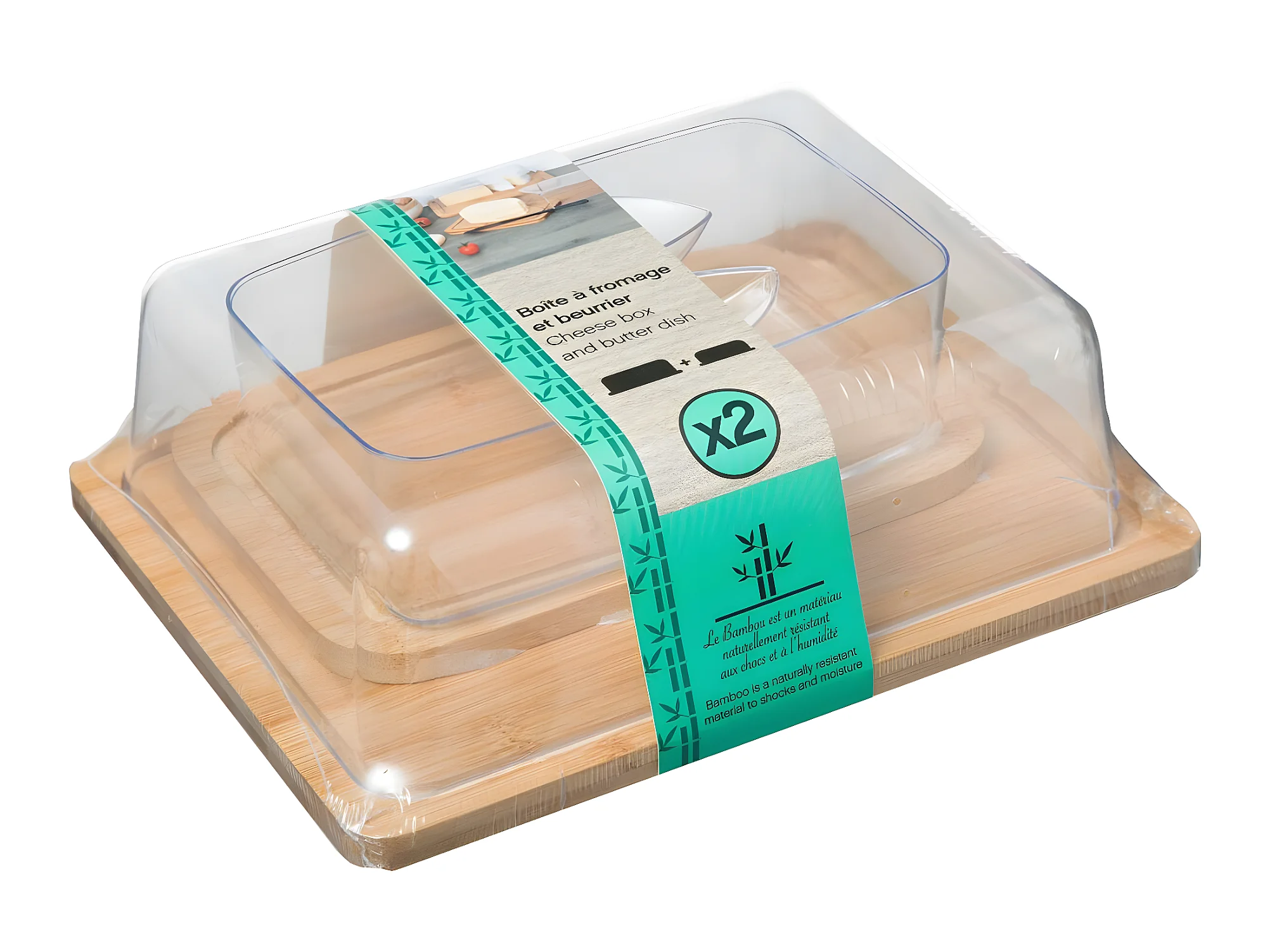 Boîte à Fromage & Beurrier "Bambou" 24cm Naturel
