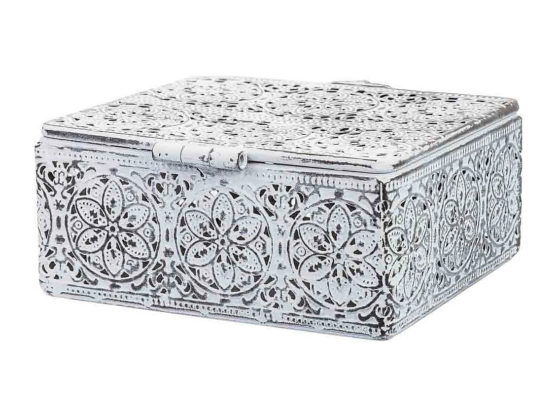 Boîte en métal blanc 12.5x12.5x6h cm (hauteur)