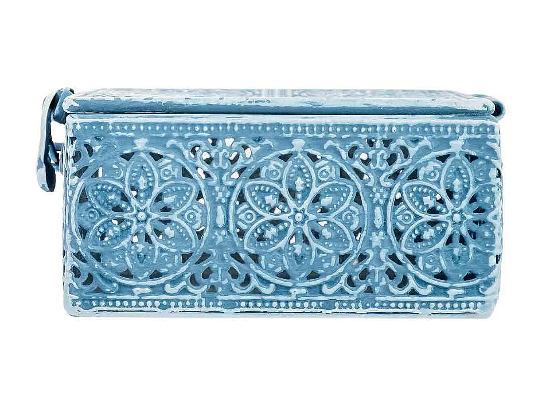 Boîte métallique bleue 12.5x12.5x6h cm (hauteur)