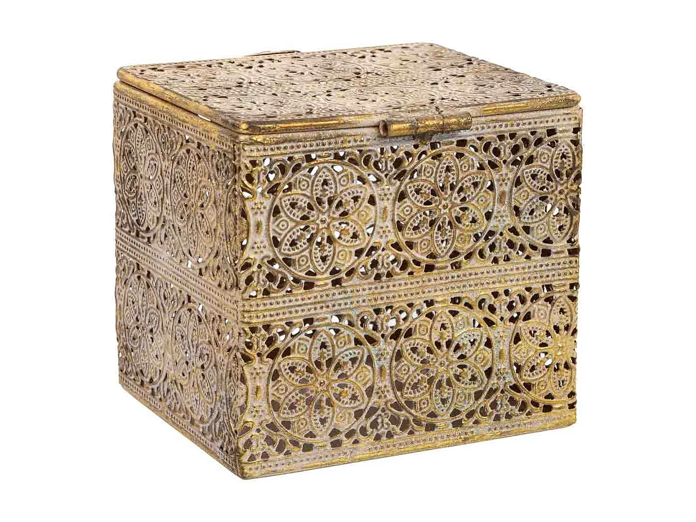 Boîte métallique marron 12.5x12.5x11.5h cm (hauteur)
