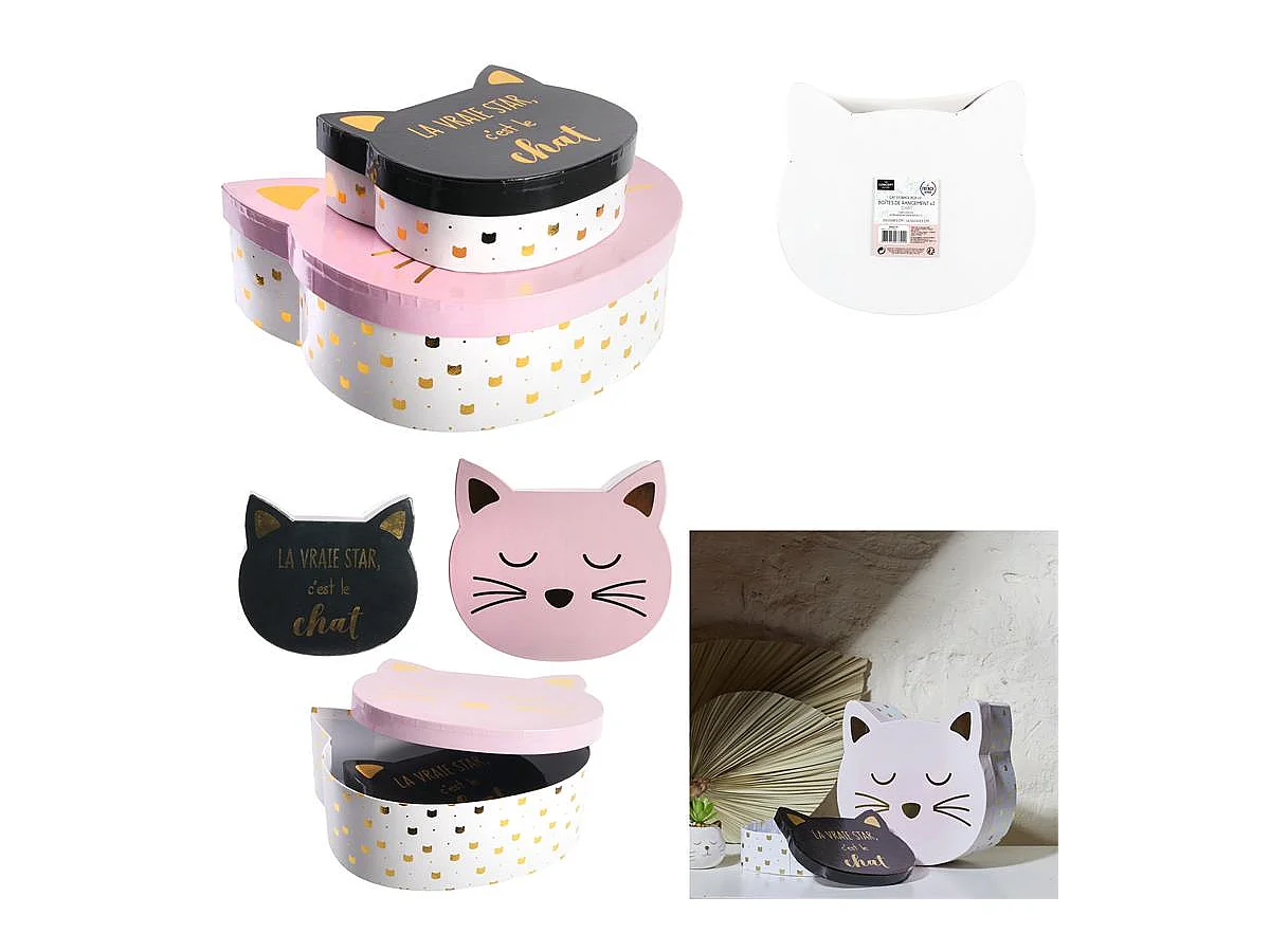 Lot de 2 Boîtes de Rangement "Chat" 25cm Rose