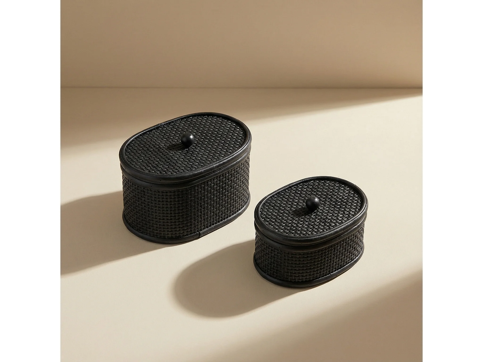 Boites en rotin ovales Mila - Noir