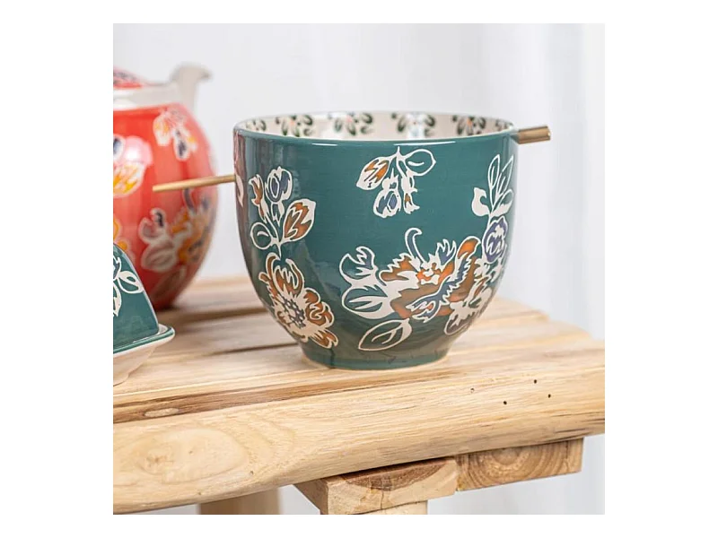 Novastyl - Lot 6 Assiettes Creuses Heraclee 20cm En Gres Decor Vert