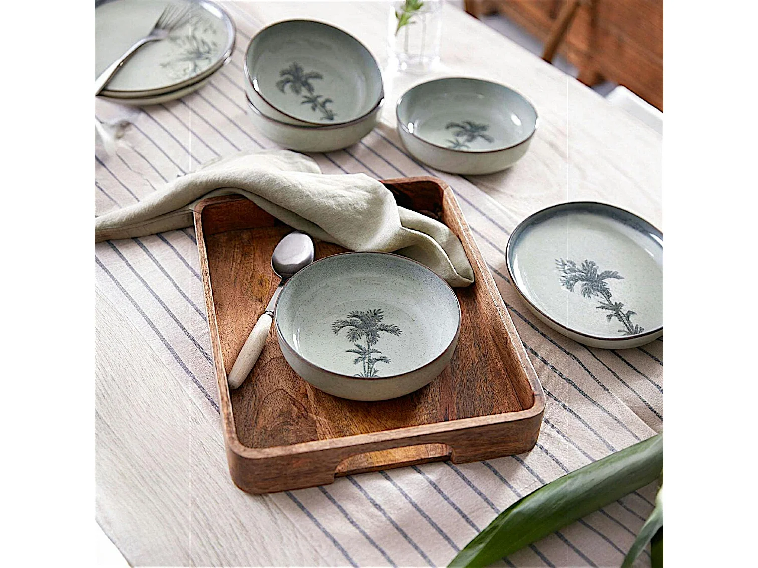 Bol céréales vert motif palmier, porcelaine (lot de 4) ELDA