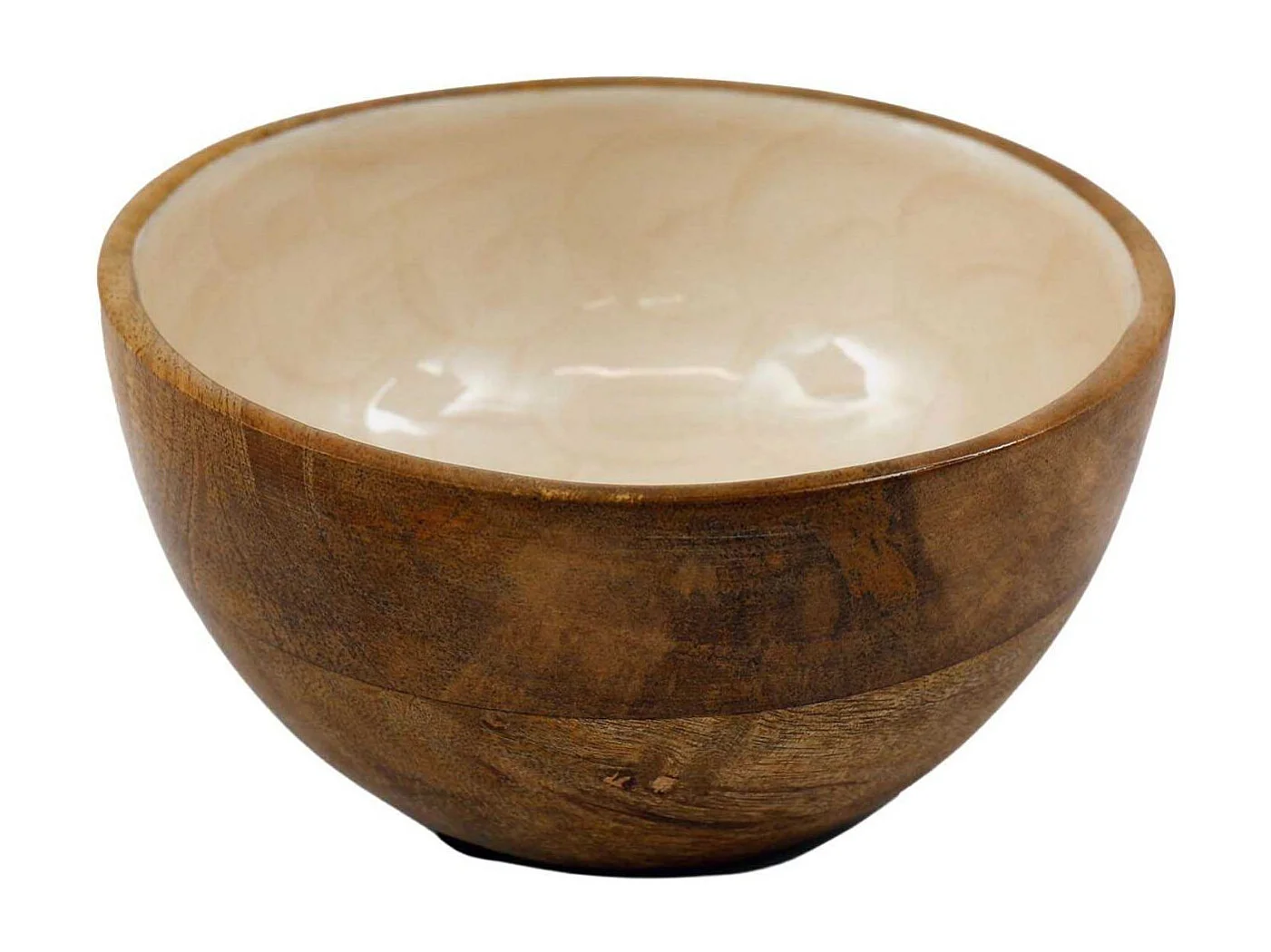 Bol en bois de manguier avec intérieur texturé nid d'abeille beige (Ø15 cm)