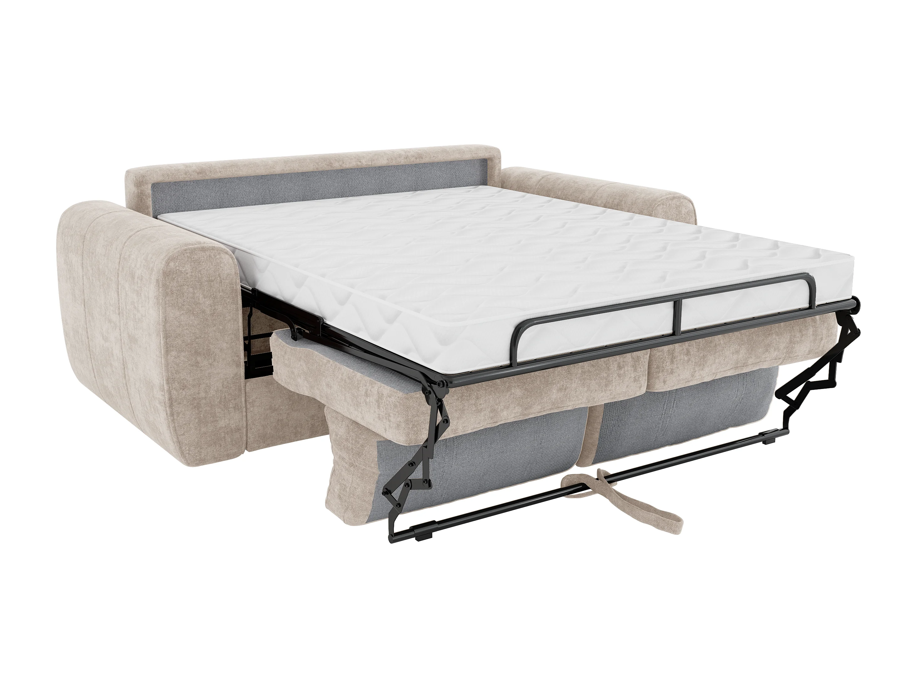 Canapé 4 places convertible express en tissu beige - Couchage à lattes large 160 cm - Matelas 14 cm - BOLIPO