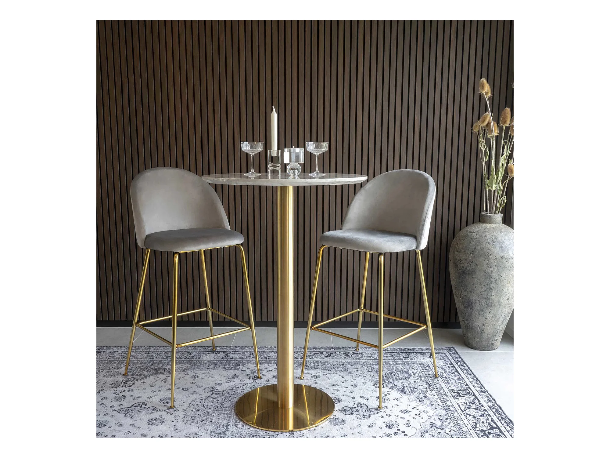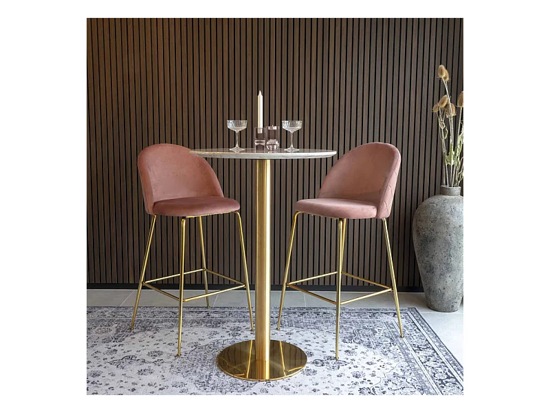 Table de bar ronde PIZA 70cm – Effet marbre blanc et pied laiton doré