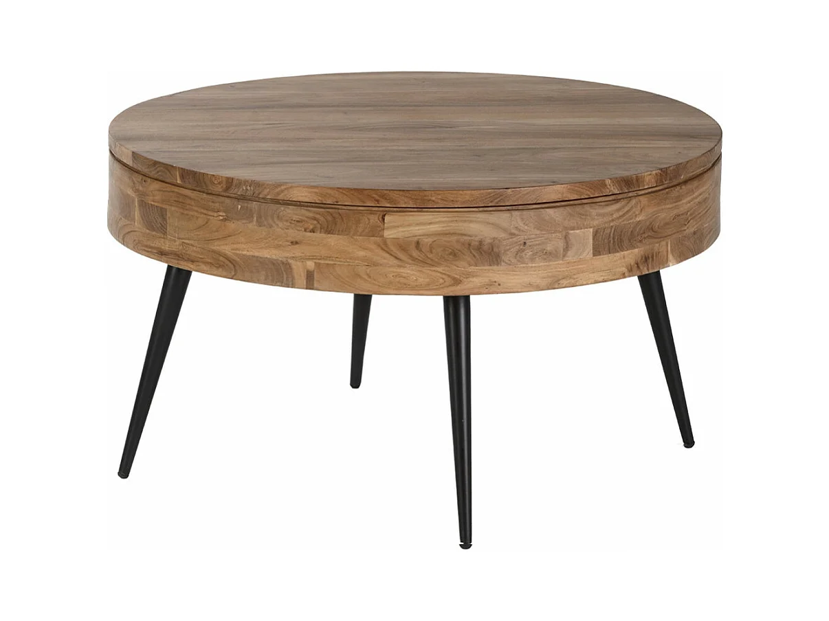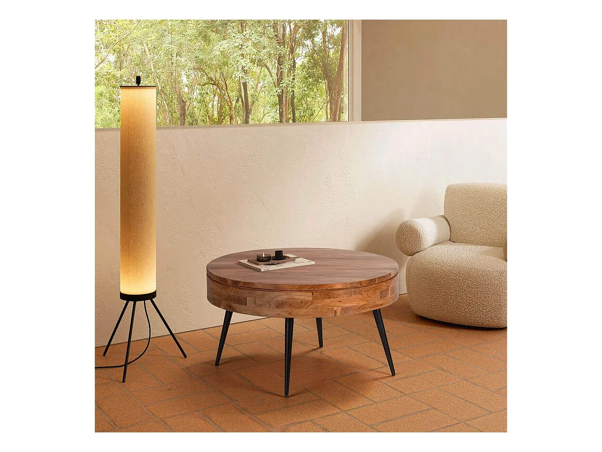 BONAA - Table Basse Ronde Ø90cm Bois d'Acacia Pieds Métal Noir