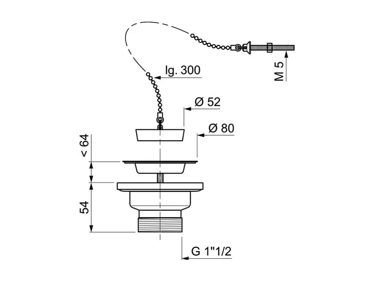 Bonde à bouchon pour évier 1 bac WIRQUIN D60 sans trop-plein grille inox