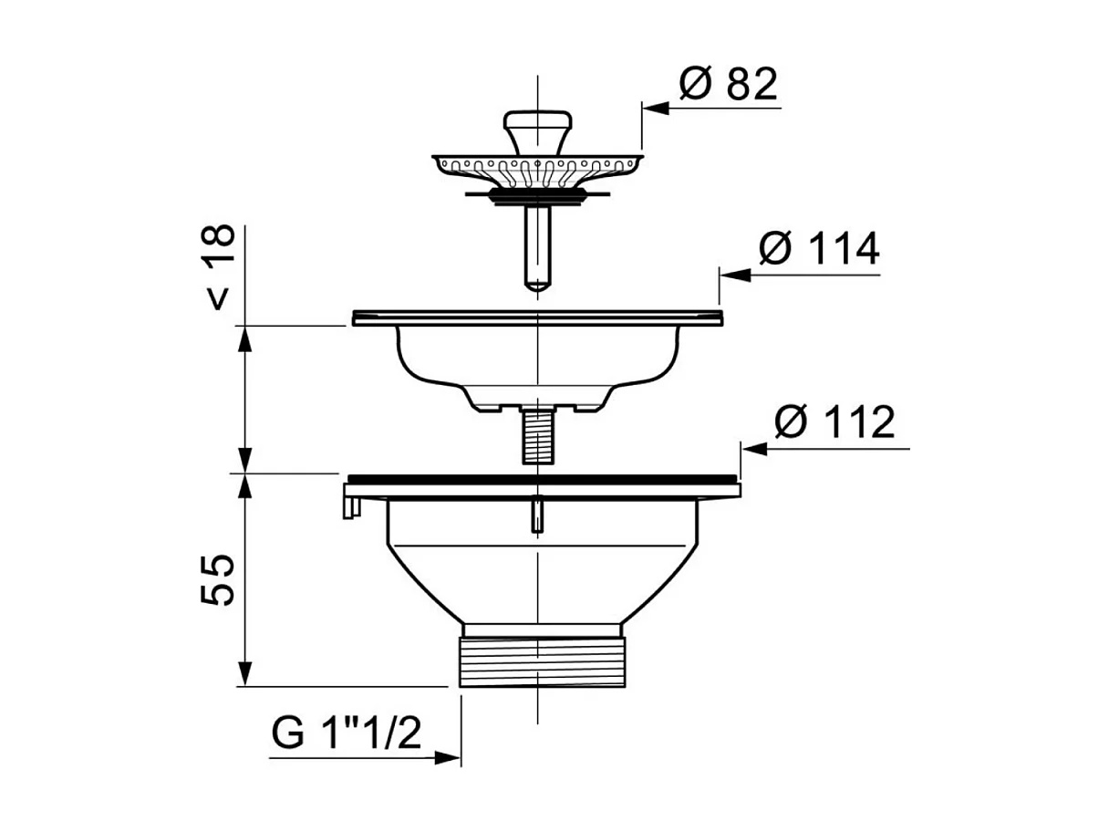 Bonde à bouchon pour évier 1 bac WIRQUIN D60 sans trop-plein grille inox