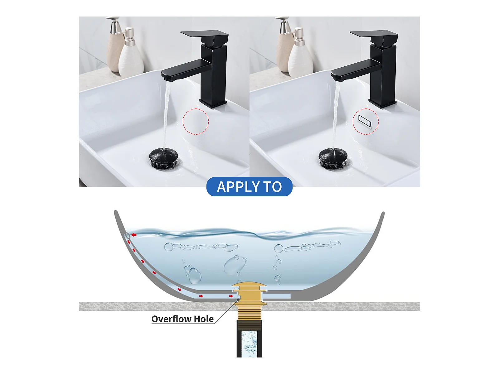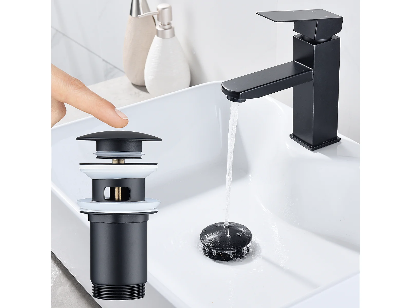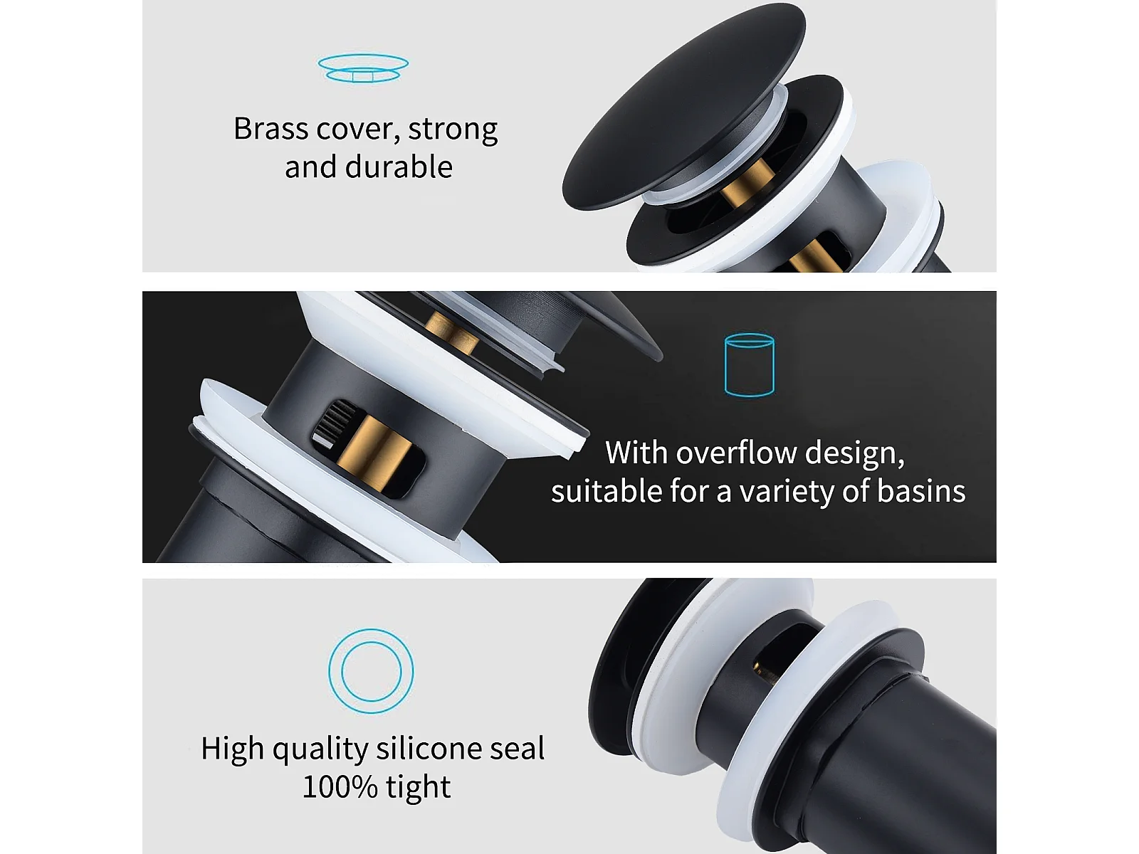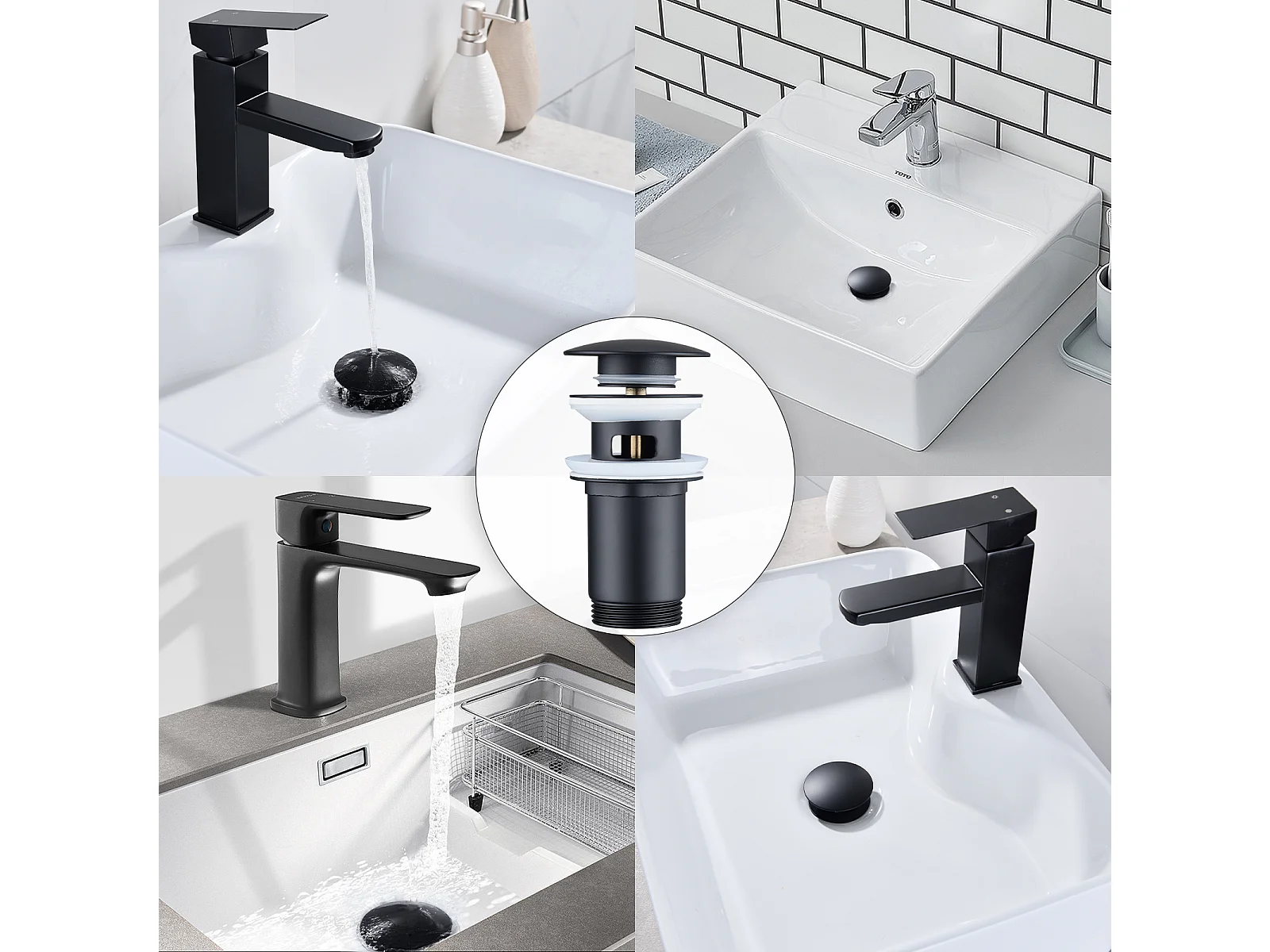 Bonde de Lavabo Bonde Pop-up avec Trop-plein Automatique Universelle Vidage pour Vasque et Lavabo Équipé Panier-filtre Noir G1-1-4"