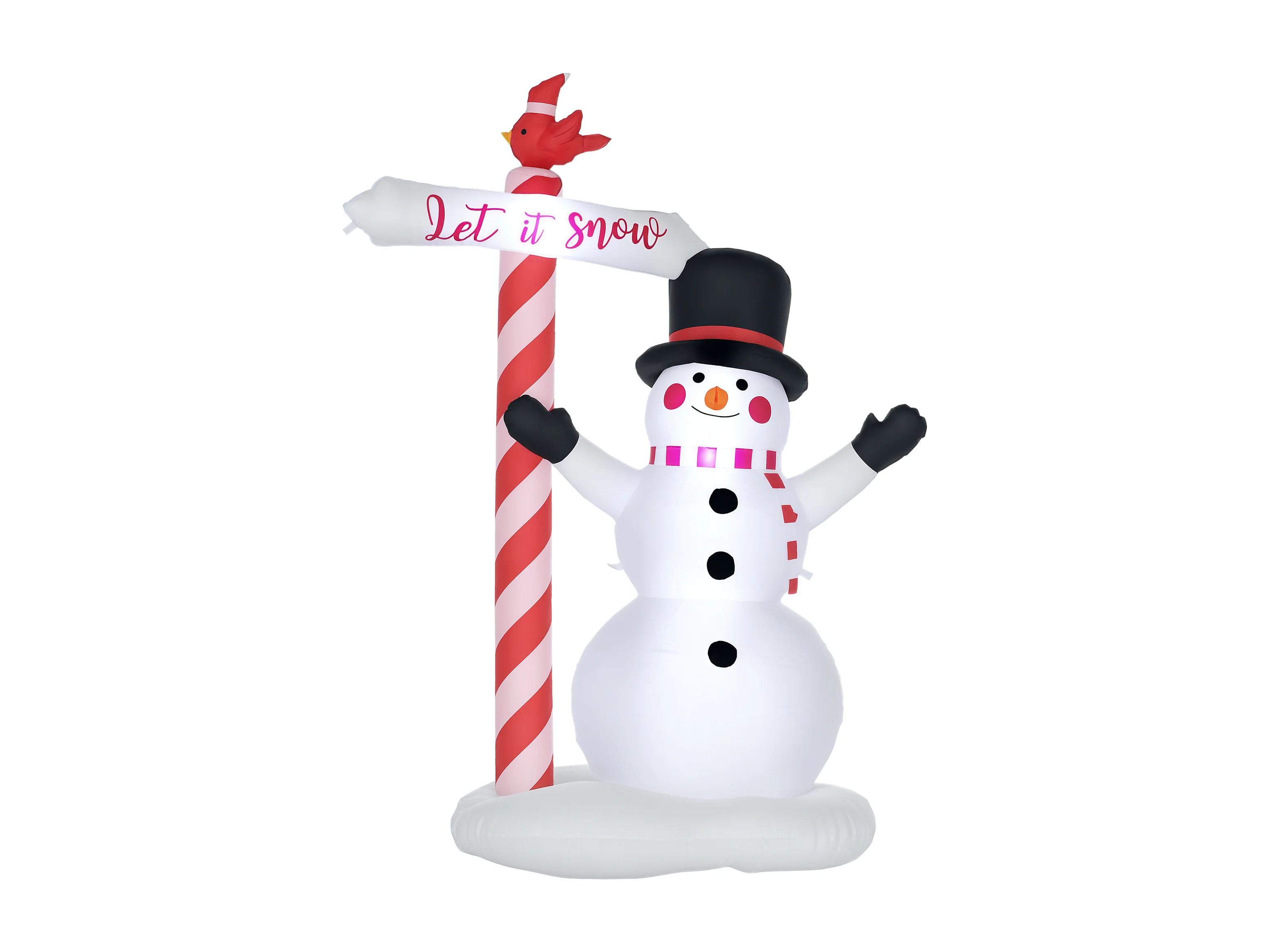 Bonhomme de neige gonflable avec pancarte 3 LED, décoration gonflable de Noël pour l'extérieur et l'intérieur, hauteur 213 cm, polyester imperméable, blanc