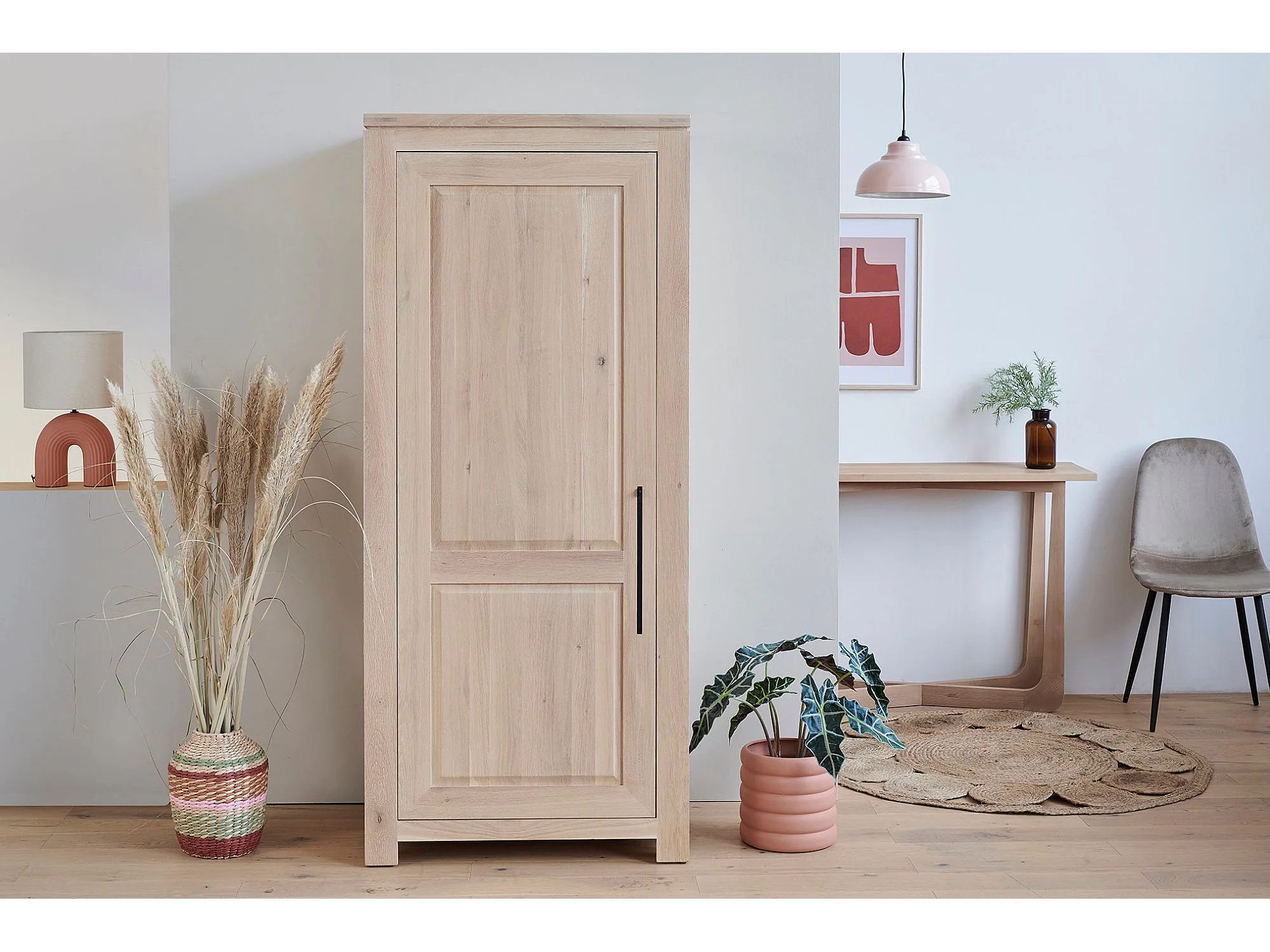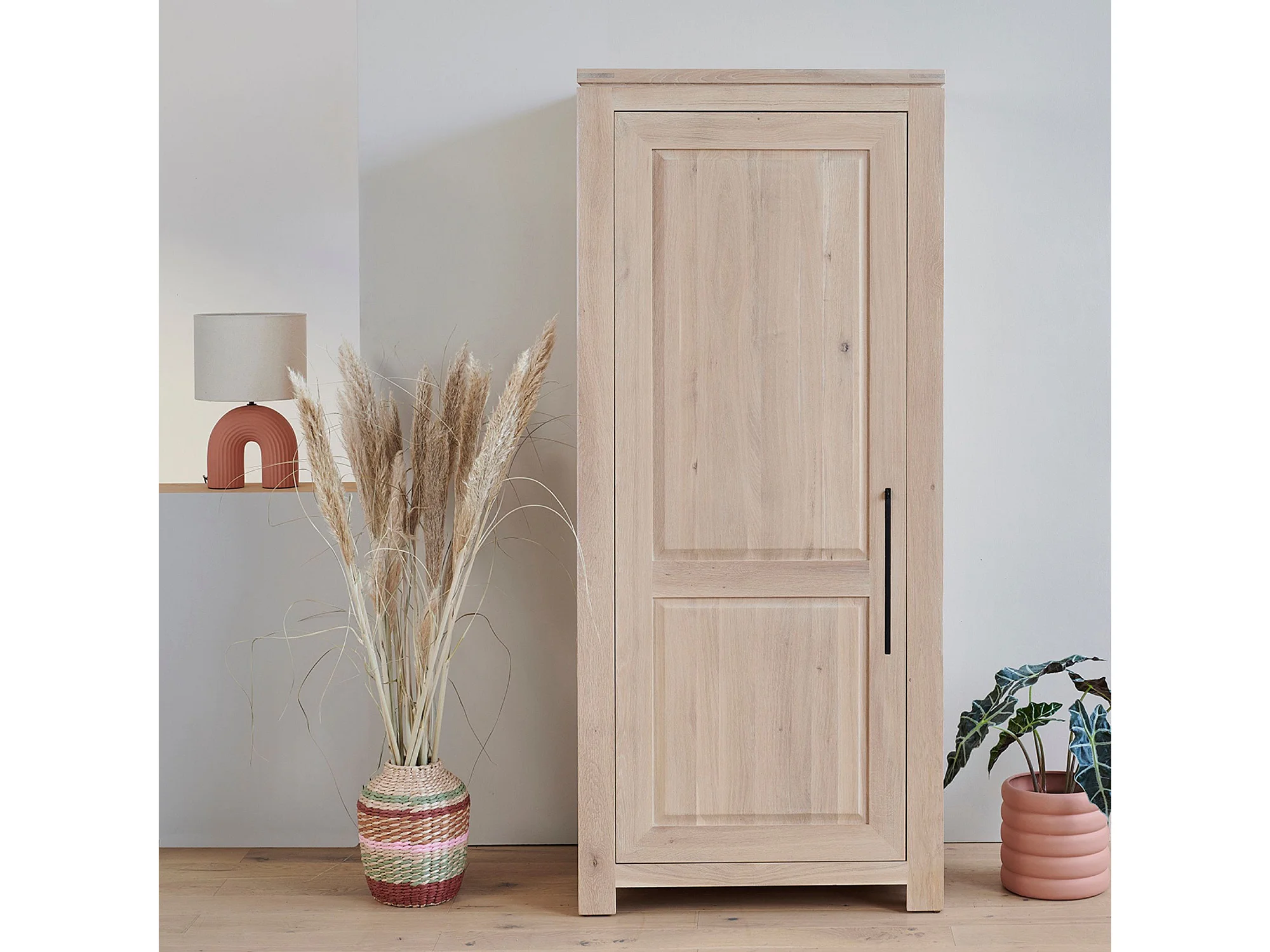 Bonnetière moderne en chêne blanchi 1 porte - BOSTON