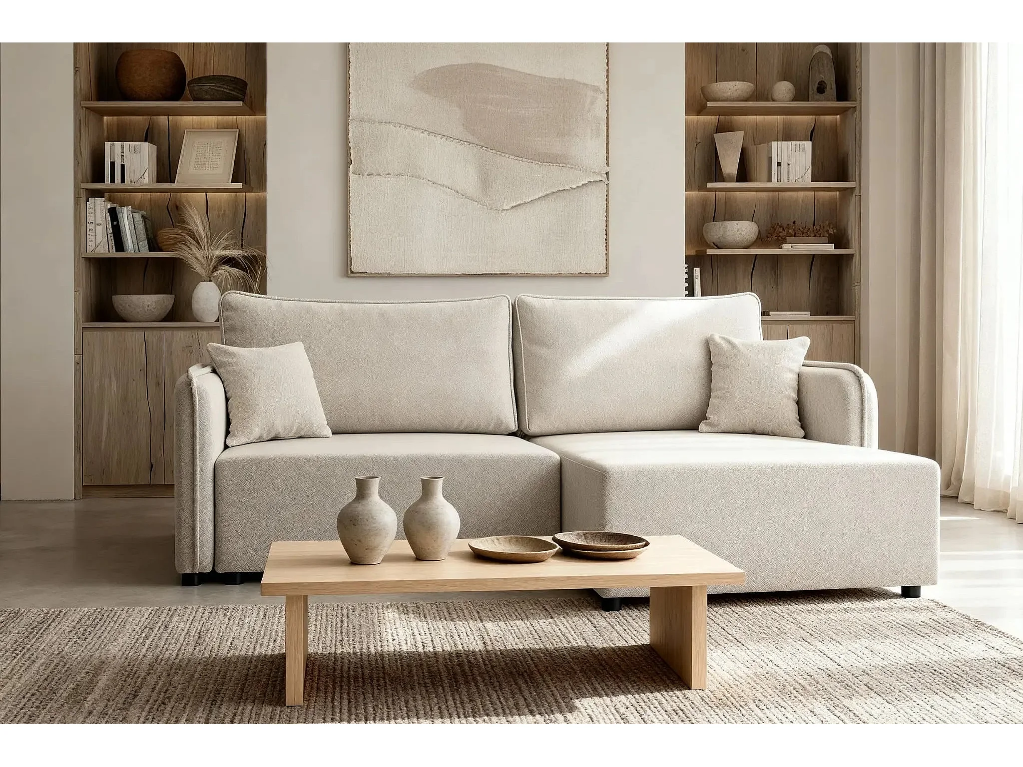 BONNIE - Canapé d'angle convertible tissu lisse 3 places - Beige - Droit