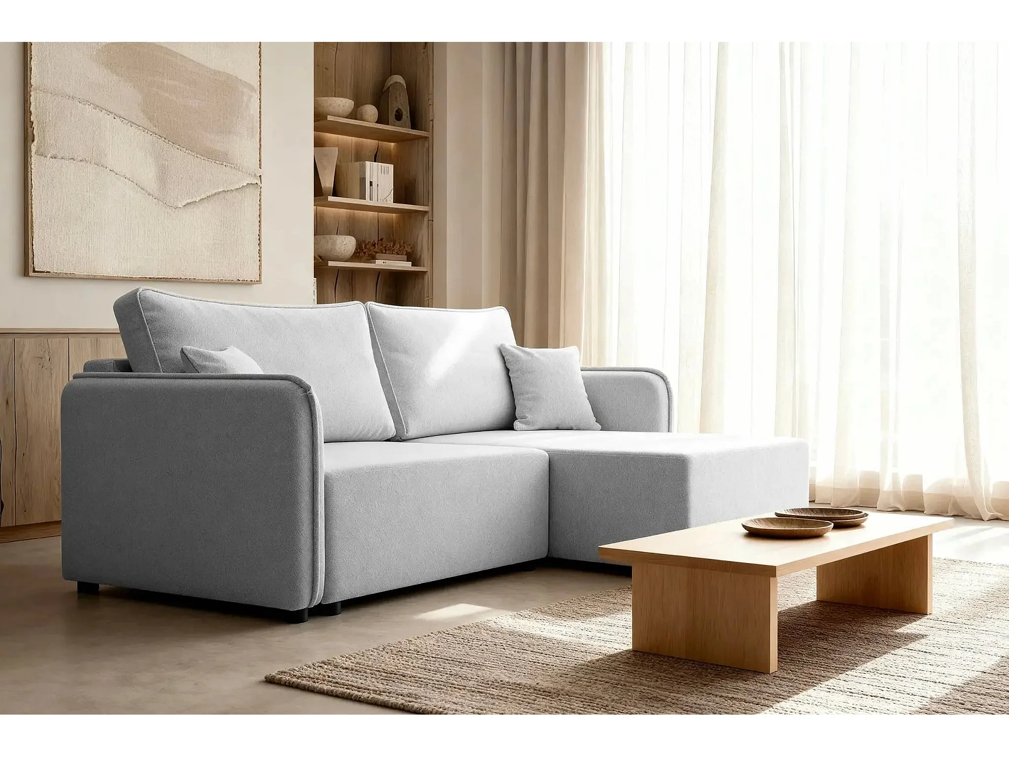BONNIE - Canapé d'angle convertible tissu lisse 3 places - Gris clair - Droit