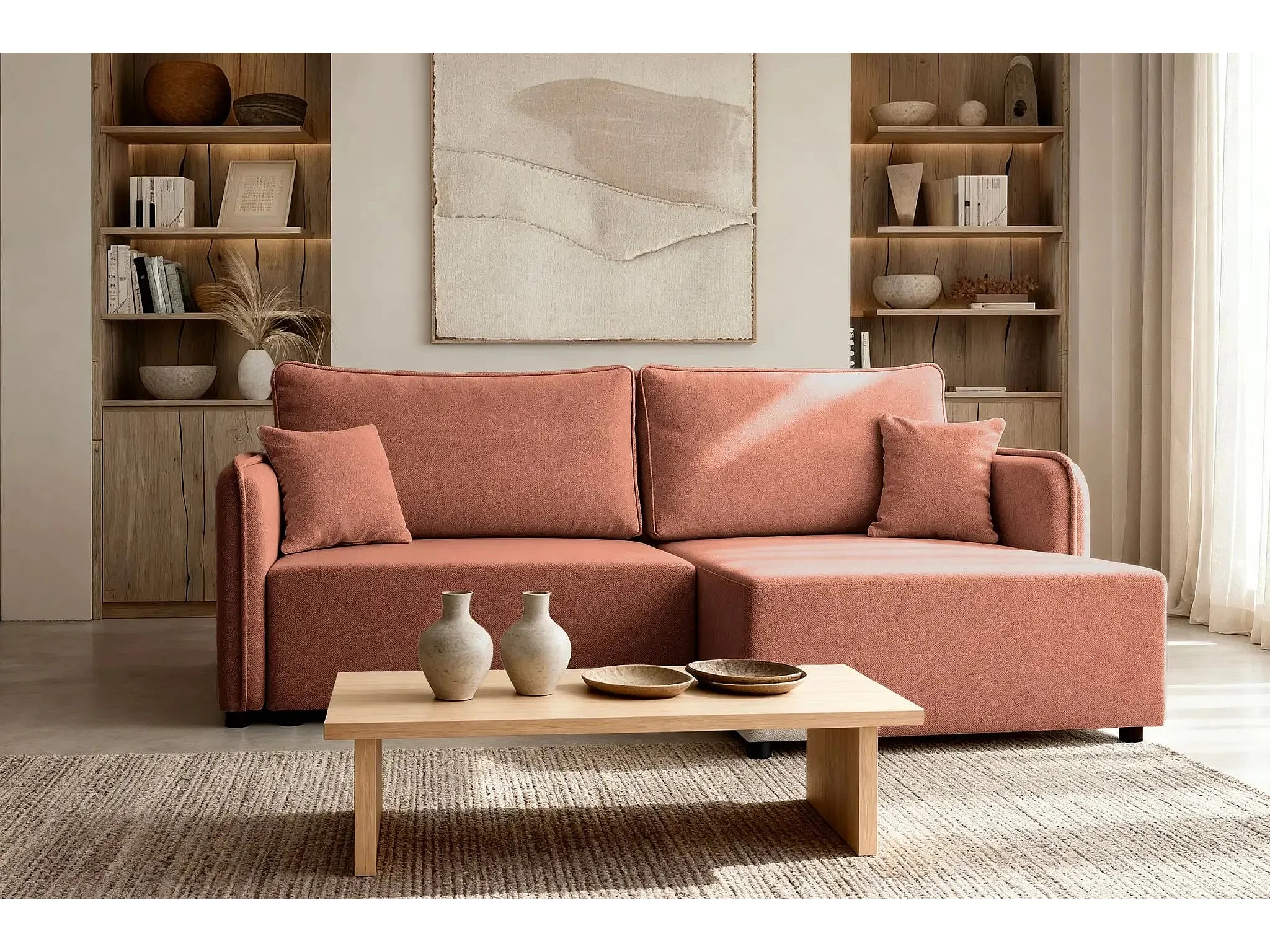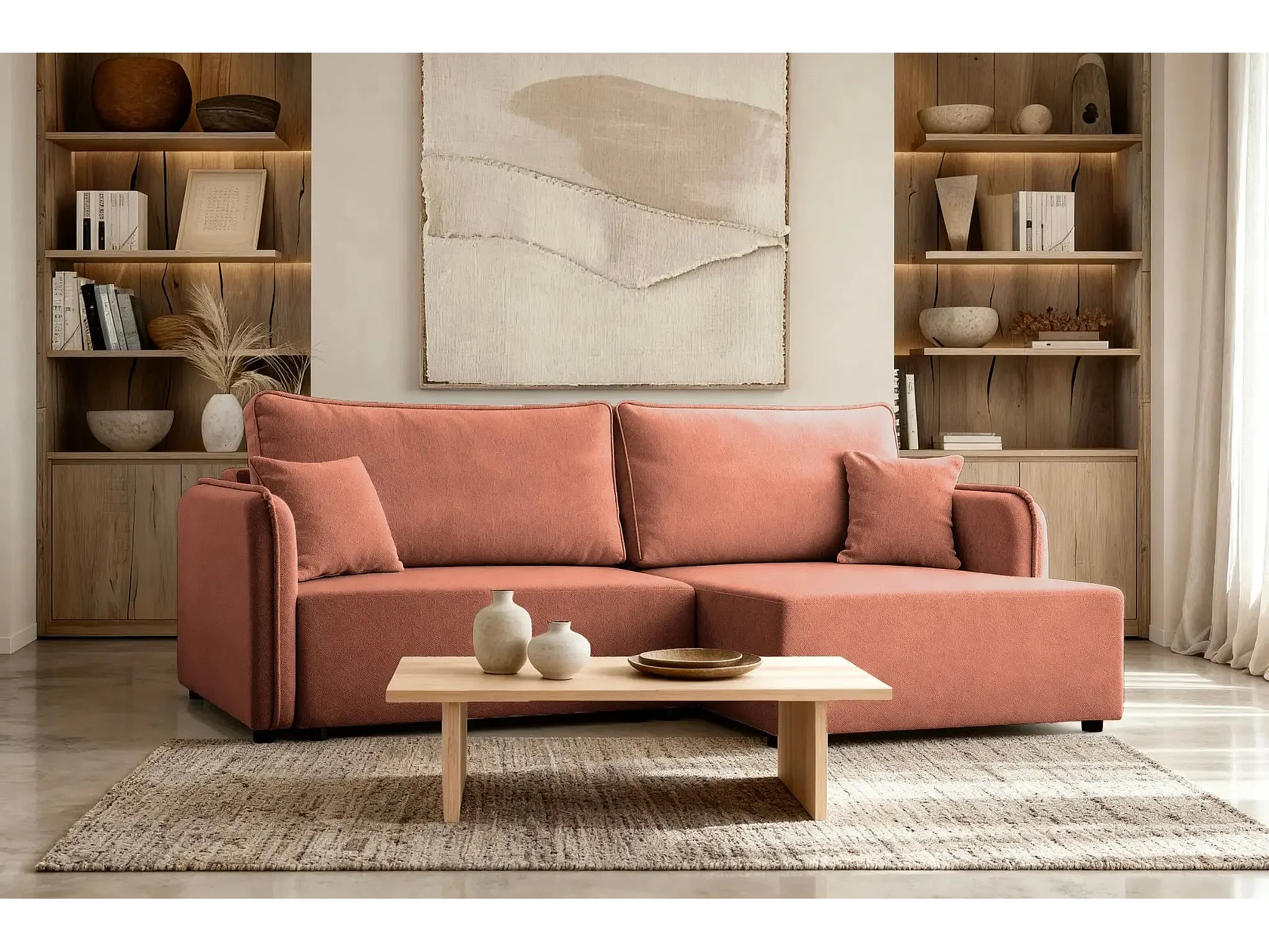 BONNIE - Canapé d'angle convertible tissu lisse 3 places - Terracotta - Droit
