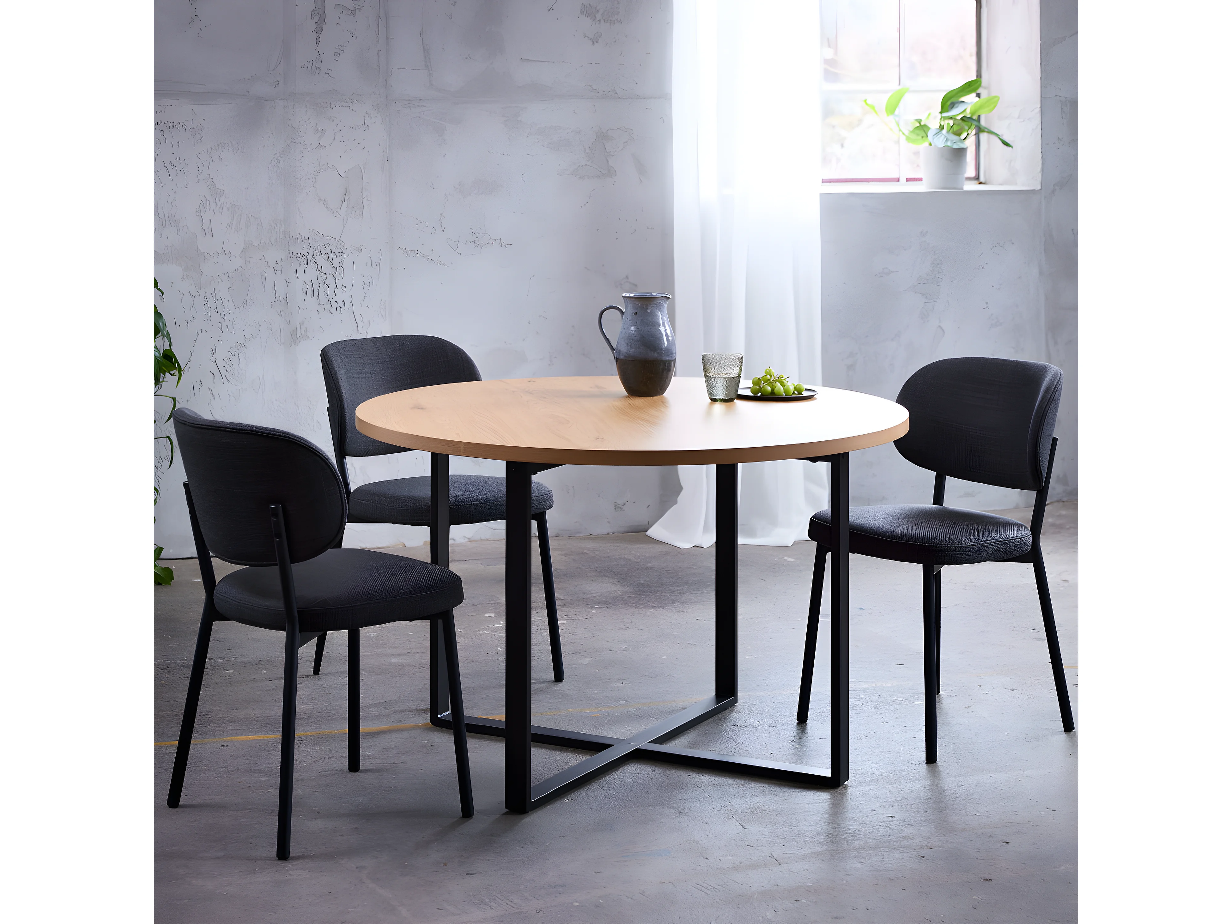 Bonnie - Table à manger 4 personnes ronde en bois et métal - Bois clair