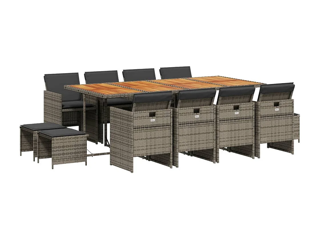 Bonno Ensemble à manger de jardin coussins 13 pcs gris résine tressée