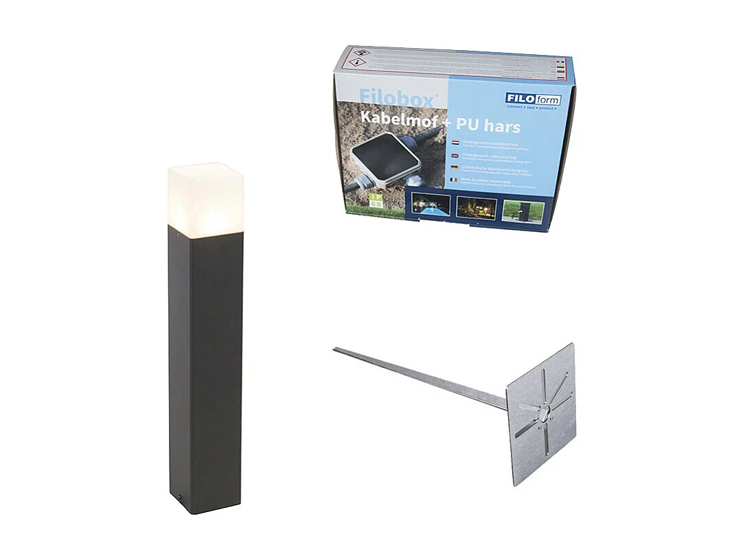 Piquet d'extérieur noir en verre opale 50 cm avec piquet de terre et presse-étoupe - Danemark