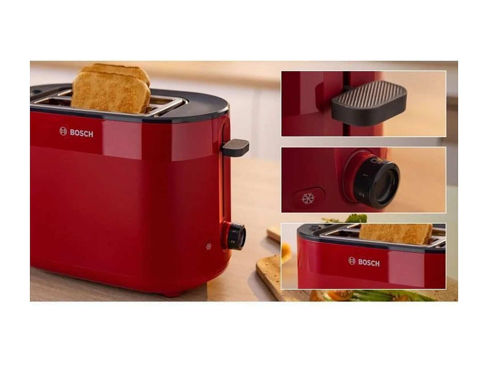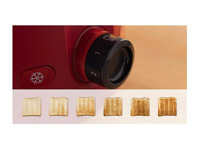 Grille-pain Moulinex Soleil 2 tranches 850W rétro rouge avec thermostat 7 positions et fonctions Décongélation et Réchauffage