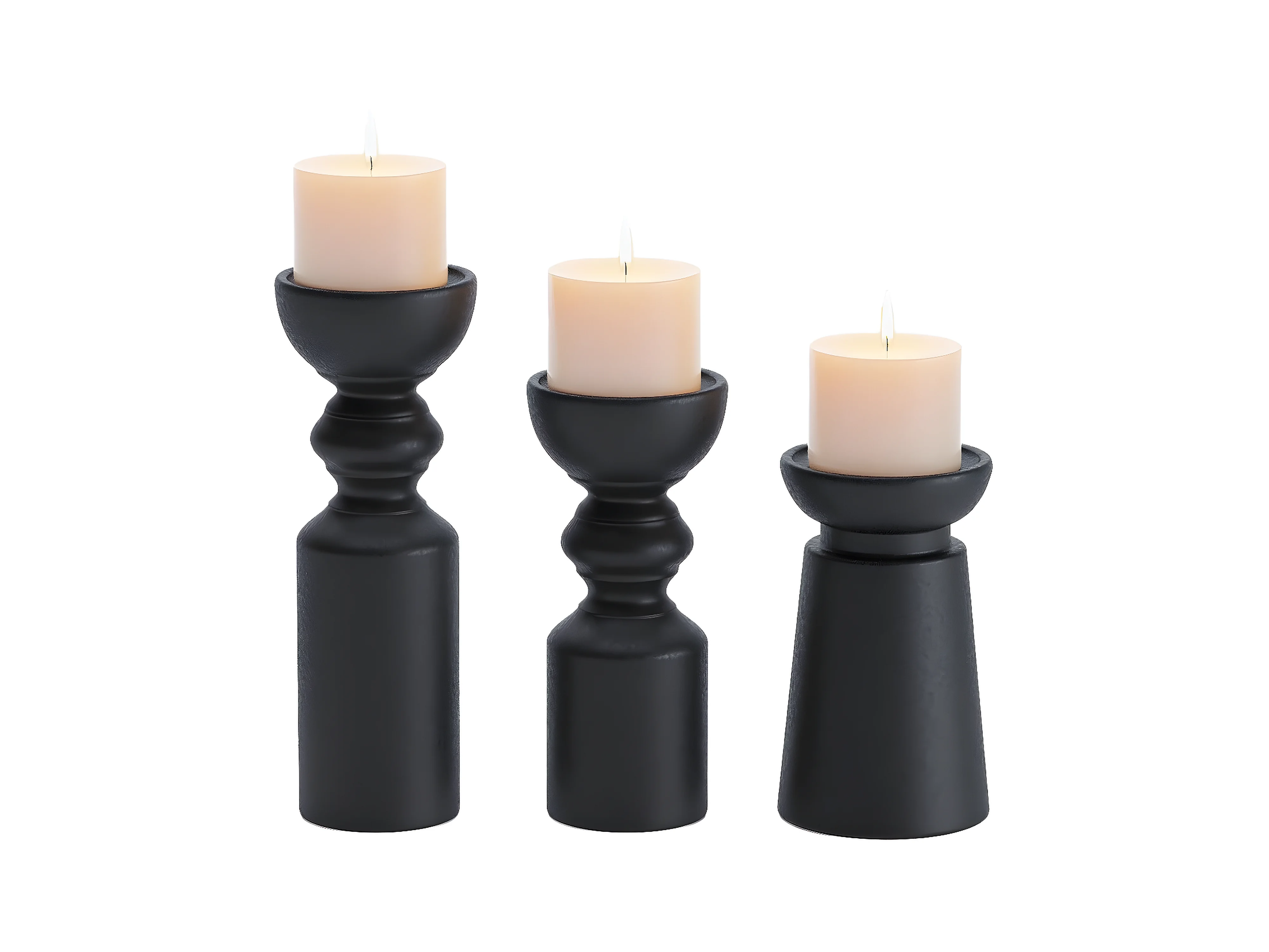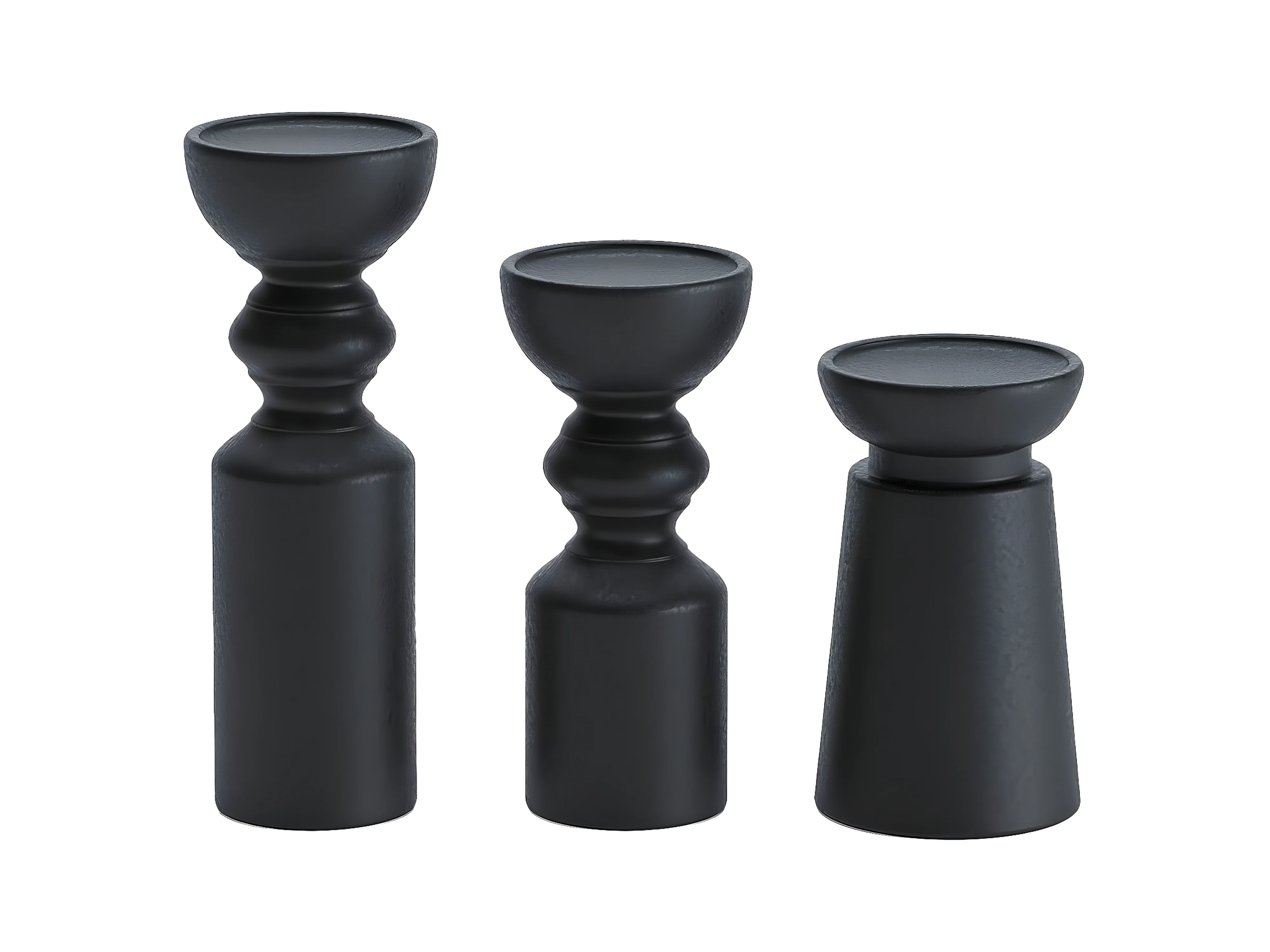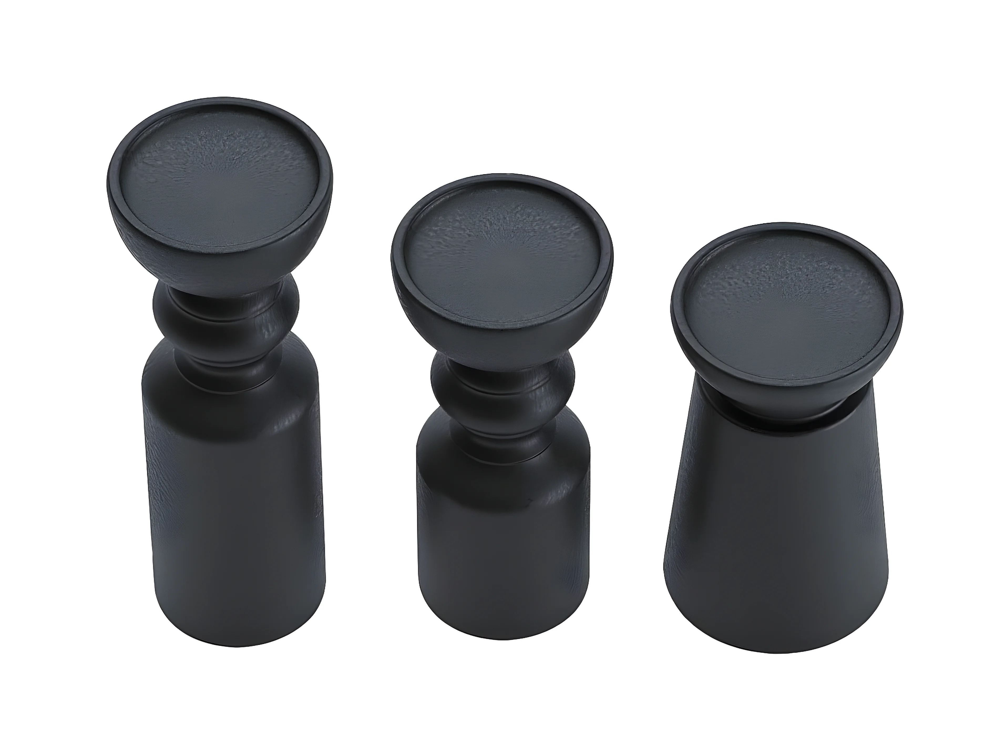 2 porte-bougies noir en teck ø 8 x 8 x 15 / ø 8 x 8 x 17