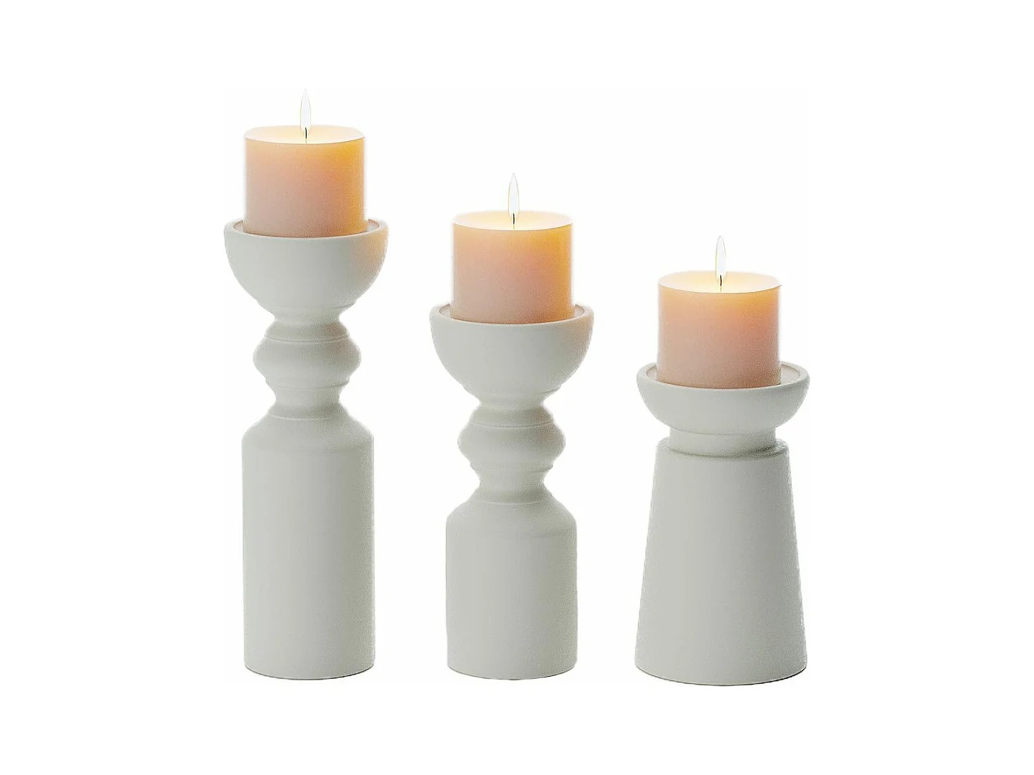 ANTALYA - Set de 2 bougeoirs en bois design coloris crème