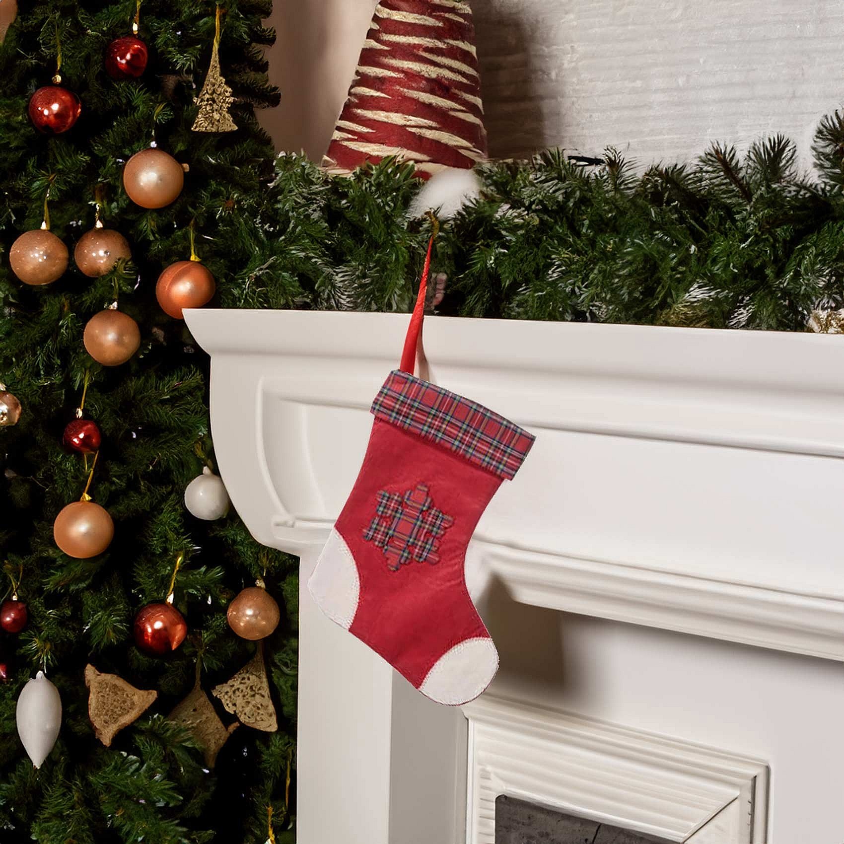 Déco de Sapin Lot de 4 Bottes de Père Noël Rouge et Blanc