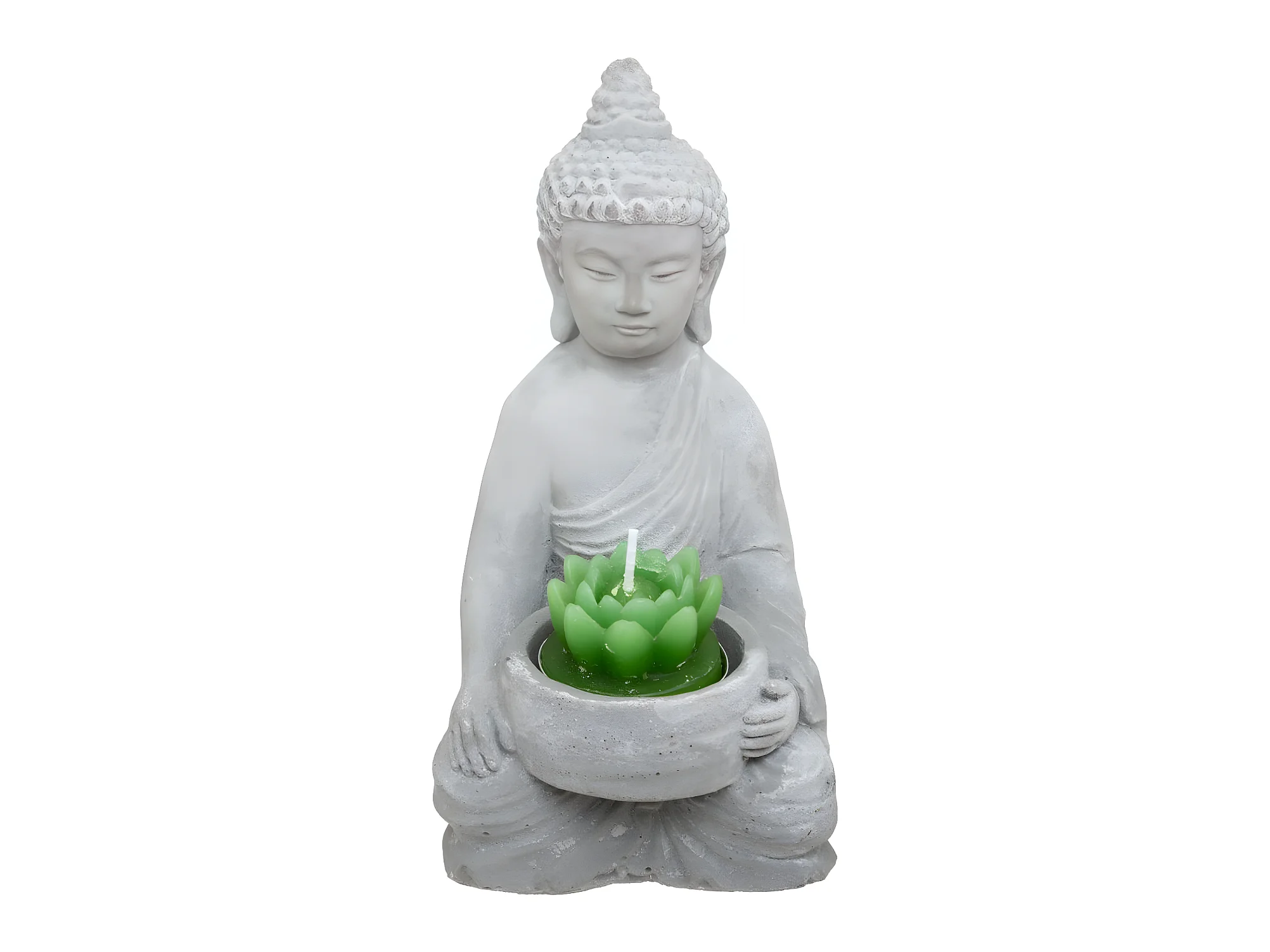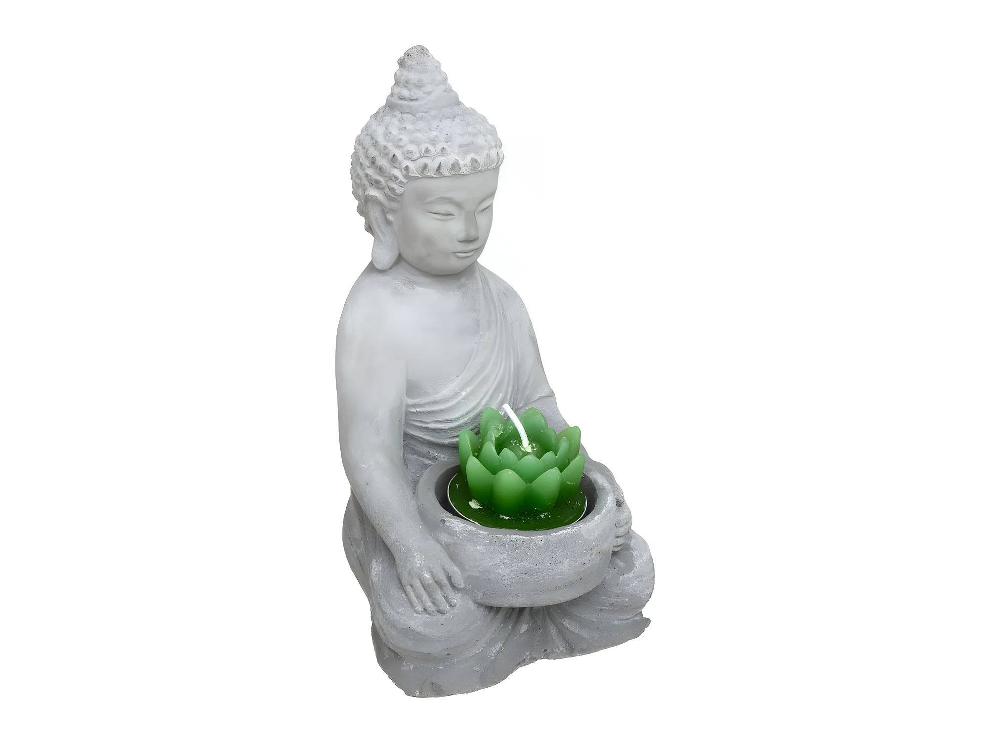 Statue Photophore avec Bougie "Bouddha" 15cm Gris