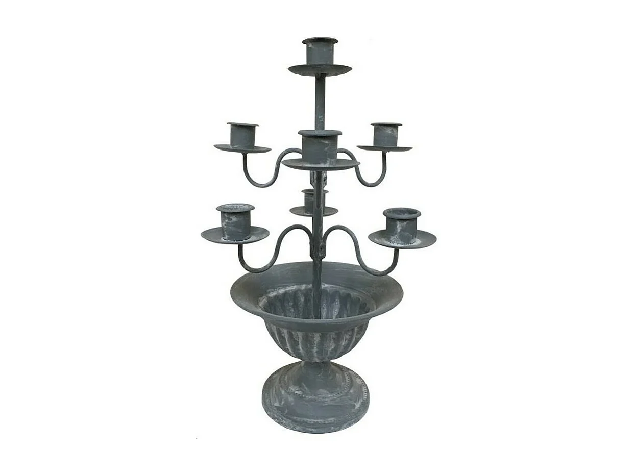 Bougeoir 7 branches en métal gris Ø.21 x 32 cm