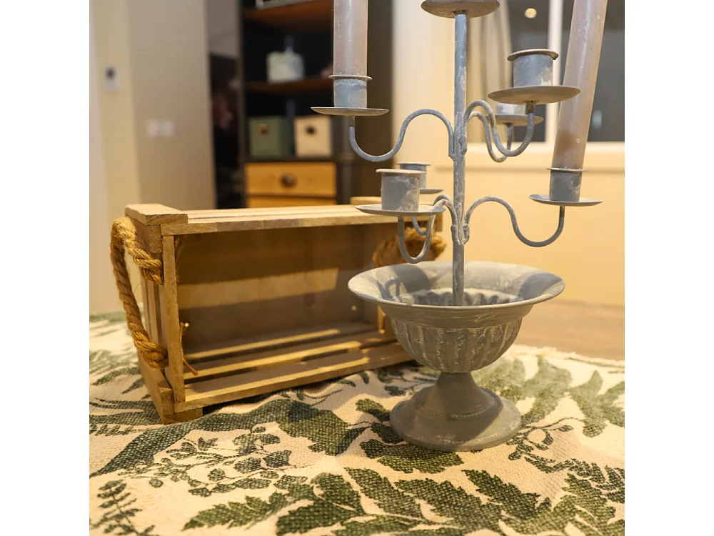 Porte bougies en métal gris 25.5 x 9.5 cm