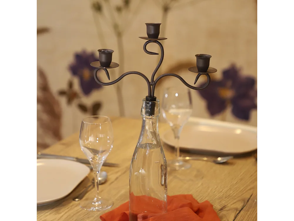 Bougeoir bouteille 3 supports en métal marron 23 x 16.5 cm