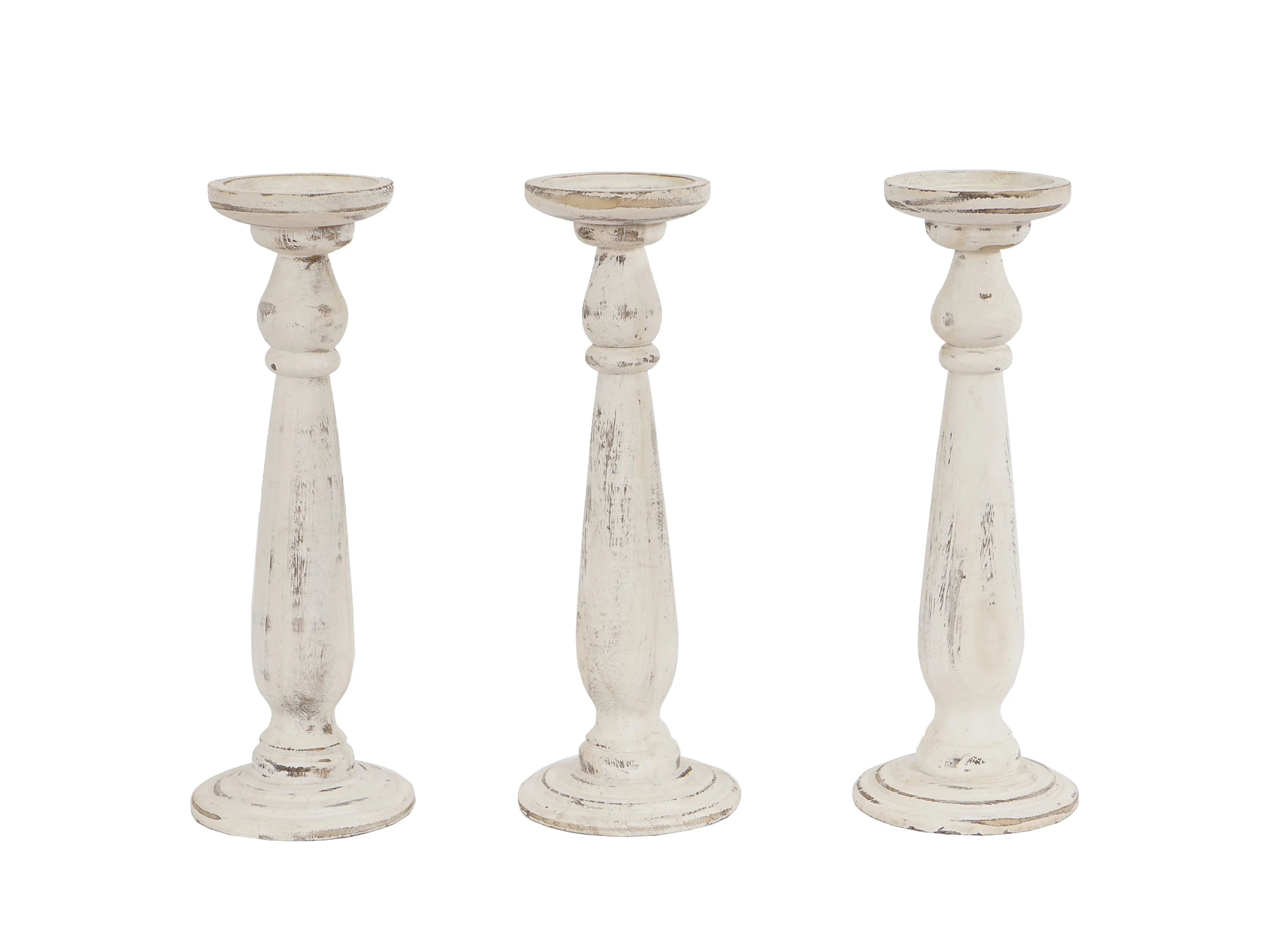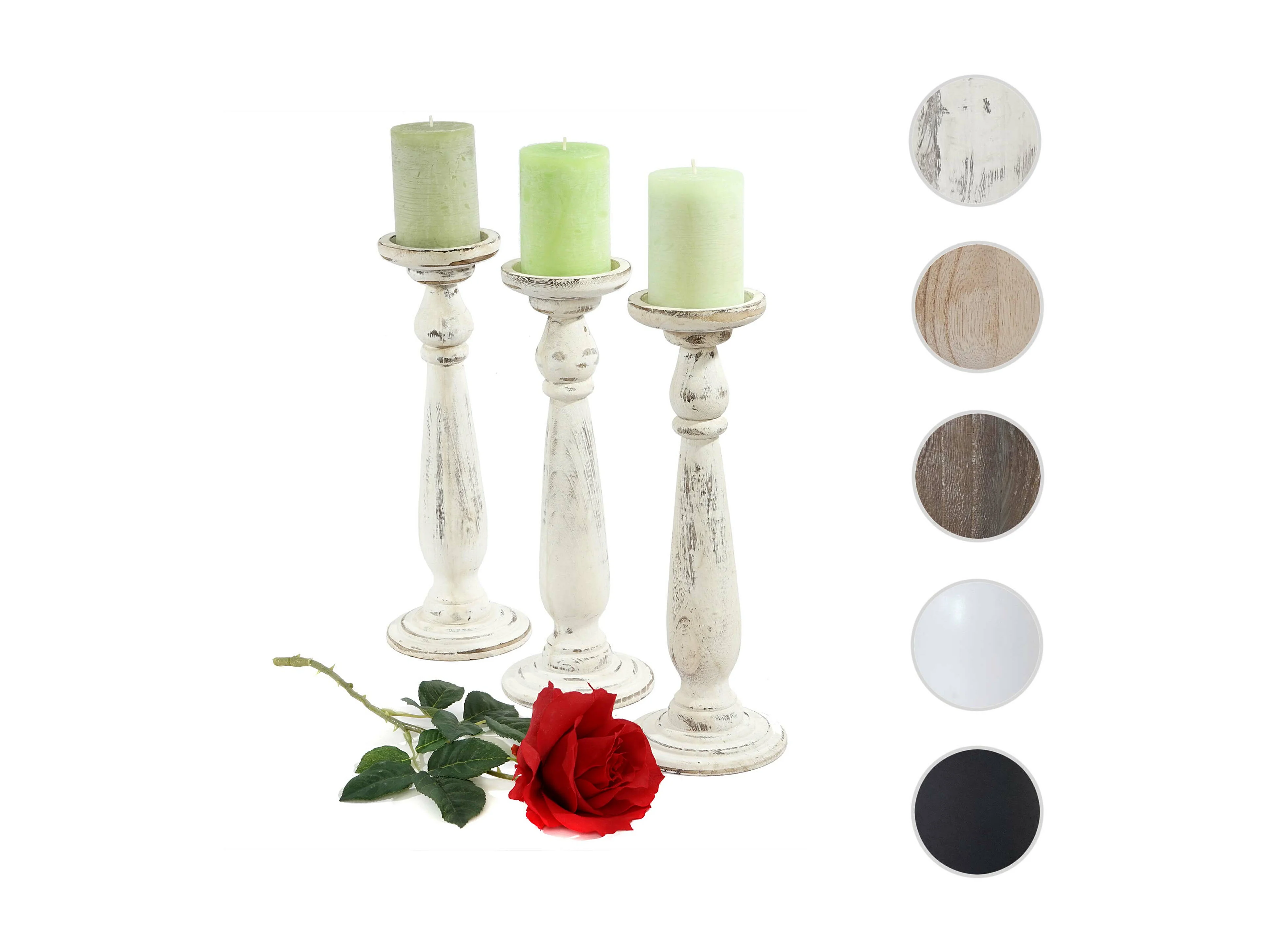 Bougeoir candélabre T360, romantique, 3 parties, style shabby, hauteur 35cm - blanc