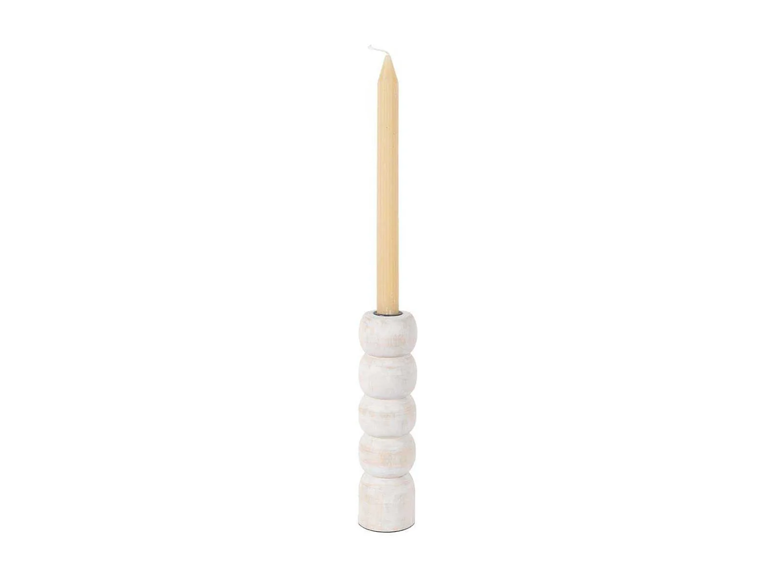 Bougeoir H. 31 cm en bois de manguier et blanc laqué - LUXORIA 2905