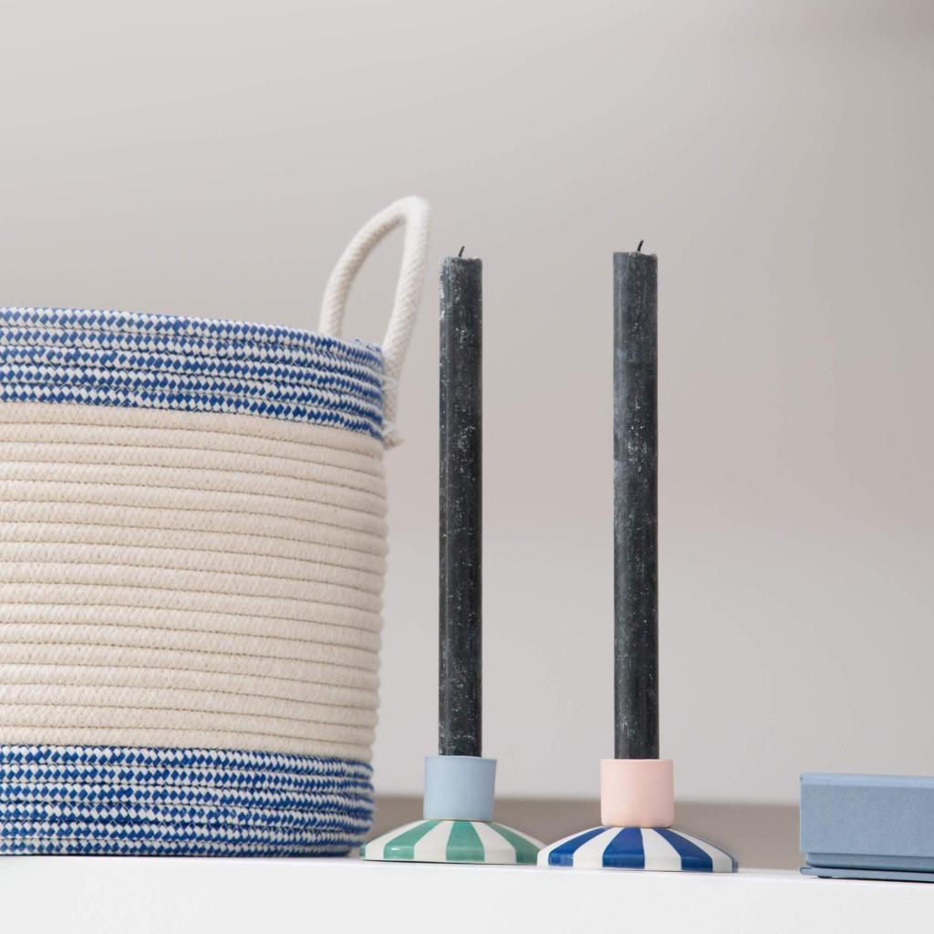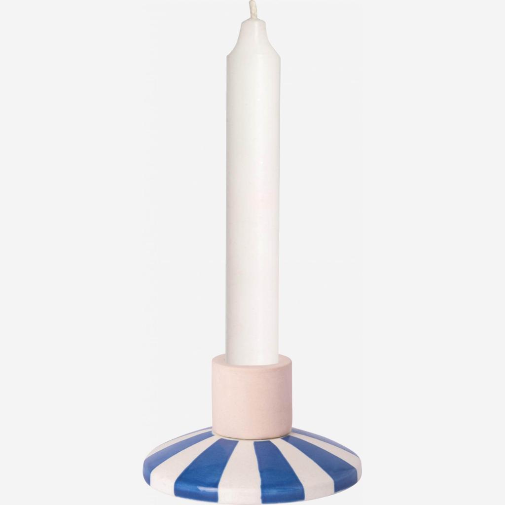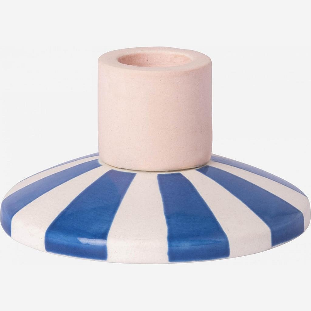 Habitat - Bougeoir en grès - 9 x 5 cm - Rayures bleues - Design by Chloé Le Cam - Ulo