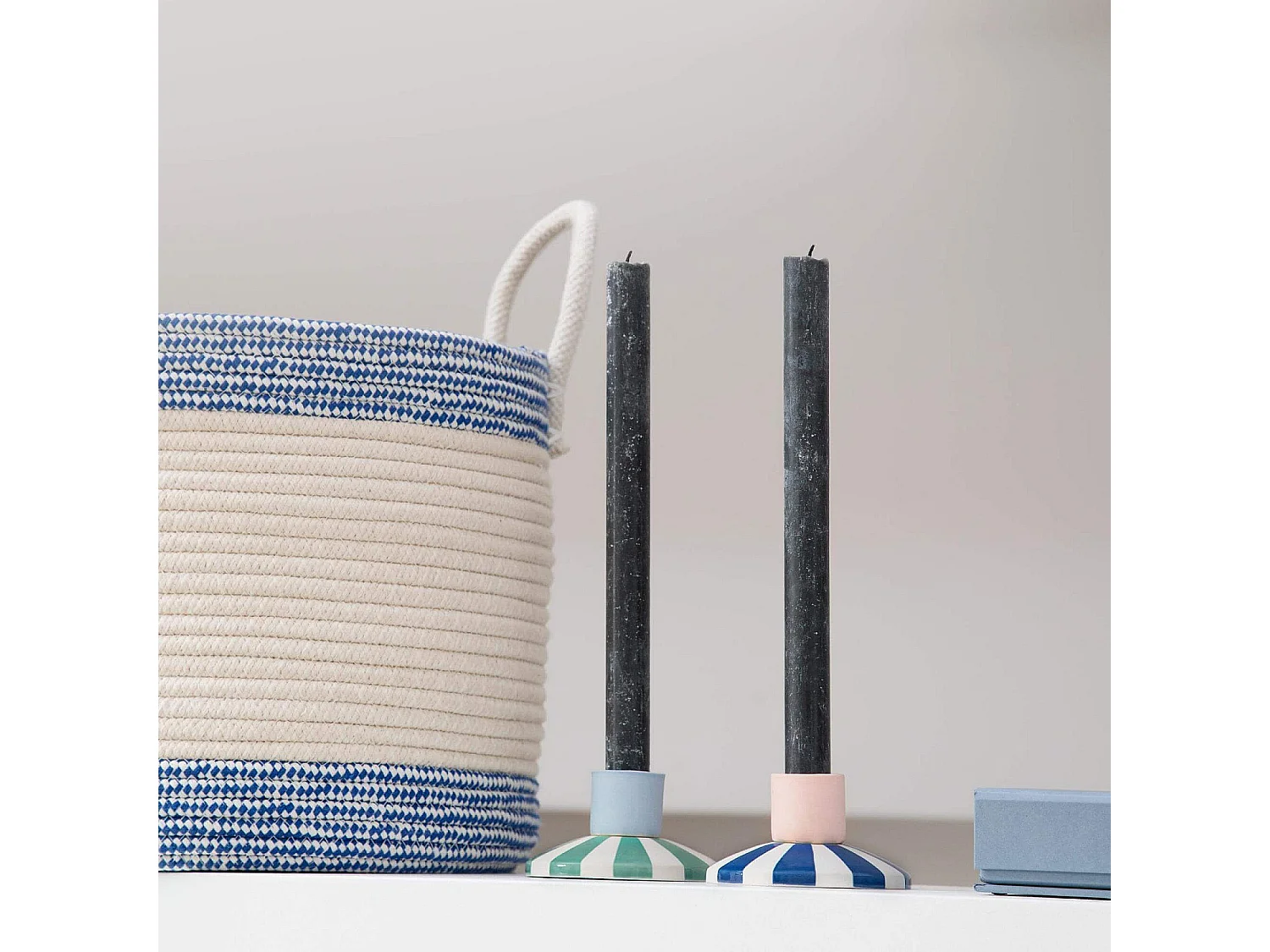 Bougeoir en grès - 9 x 5 cm - Rayures bleues - Design by Chloé Le Cam