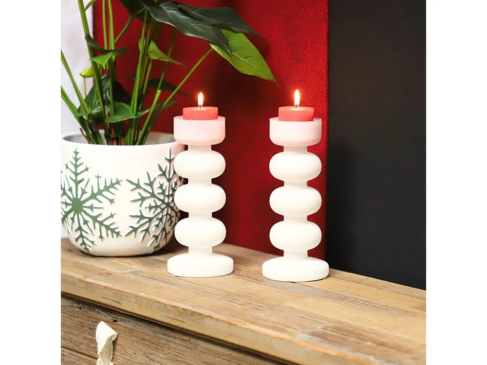 Bougeoir à bougie en verre blanc 8 x 20 cm
