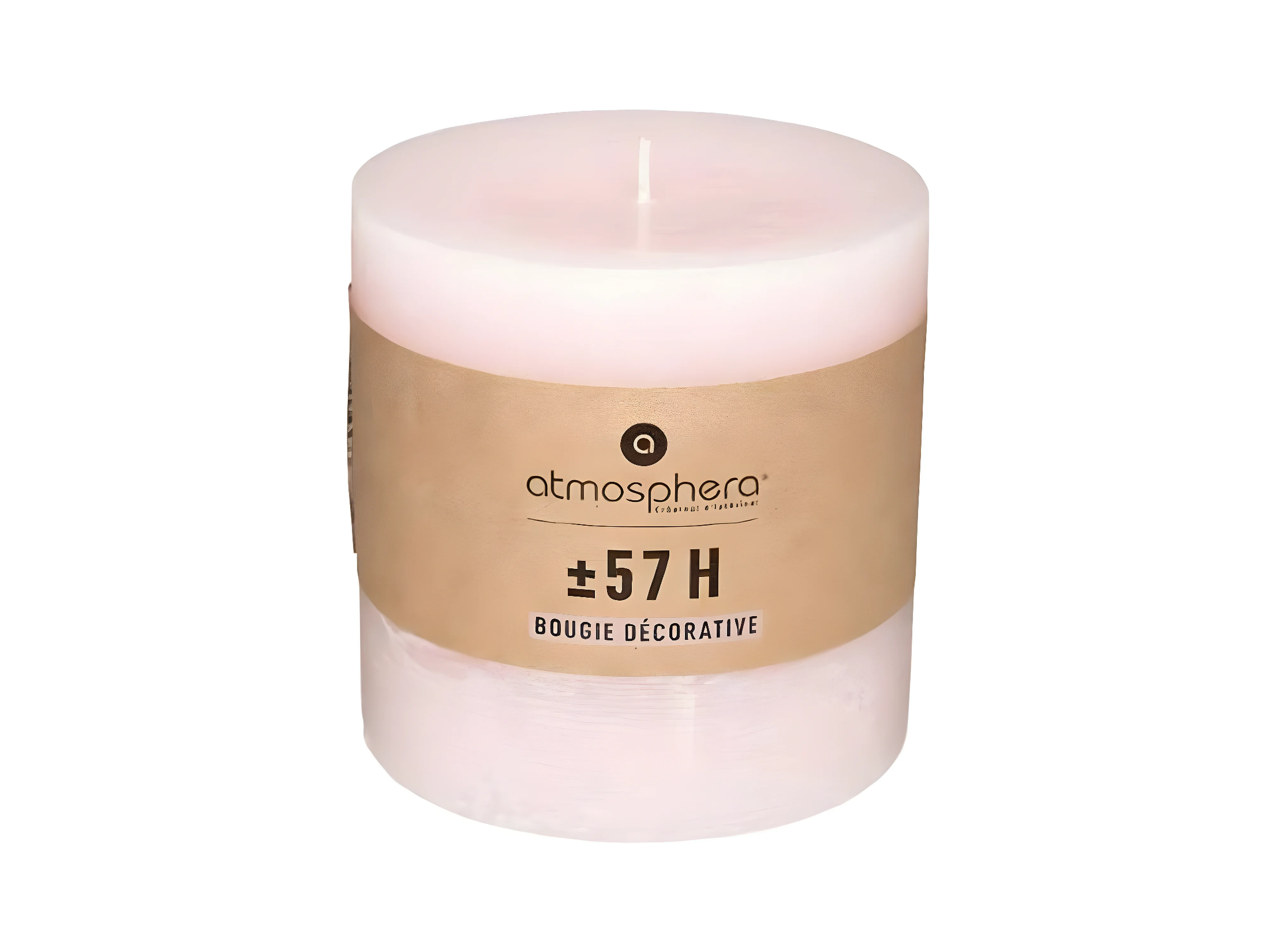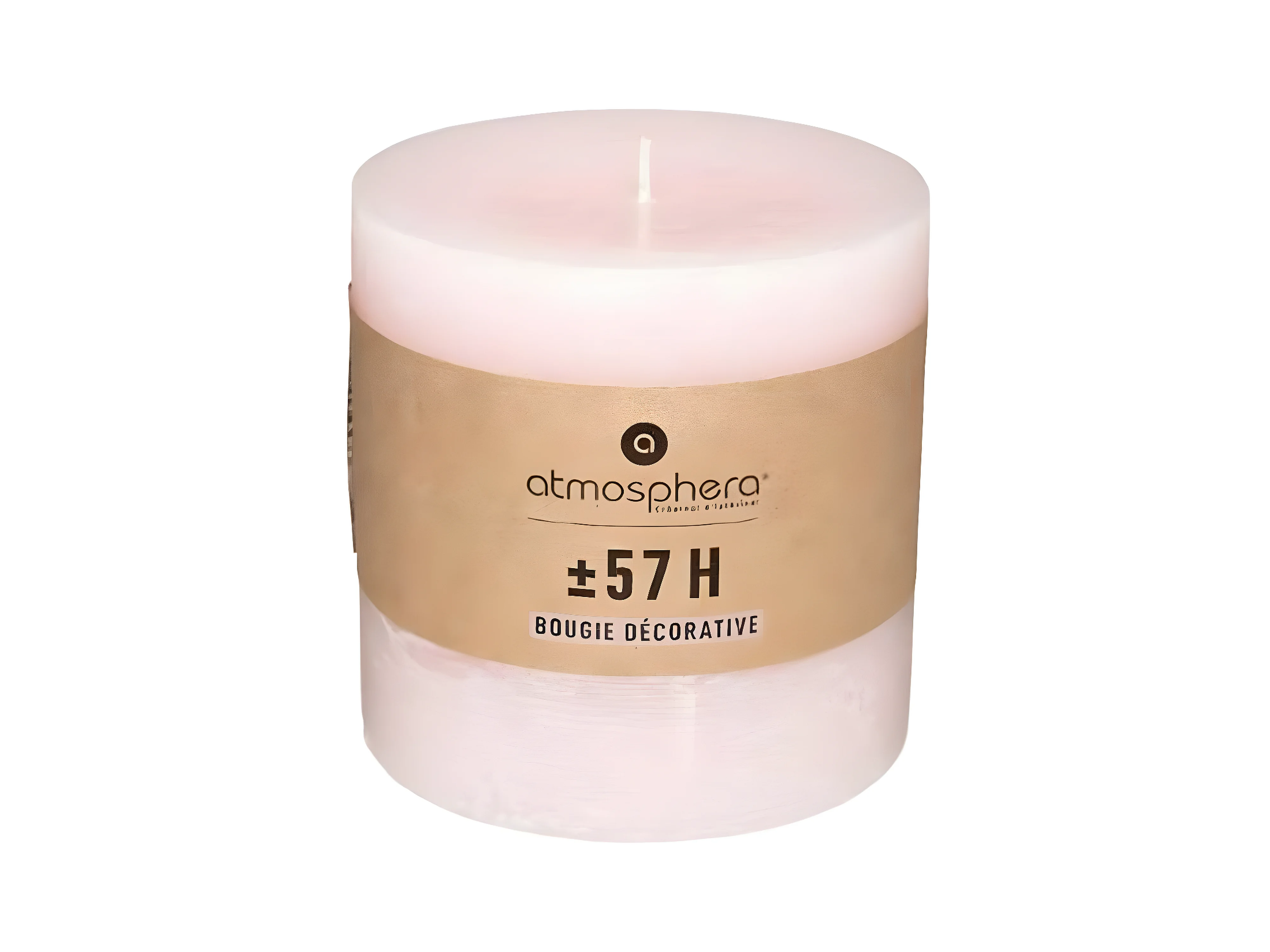 Bougie Pilier Ronde Déco "Rustique" 10cm Rose