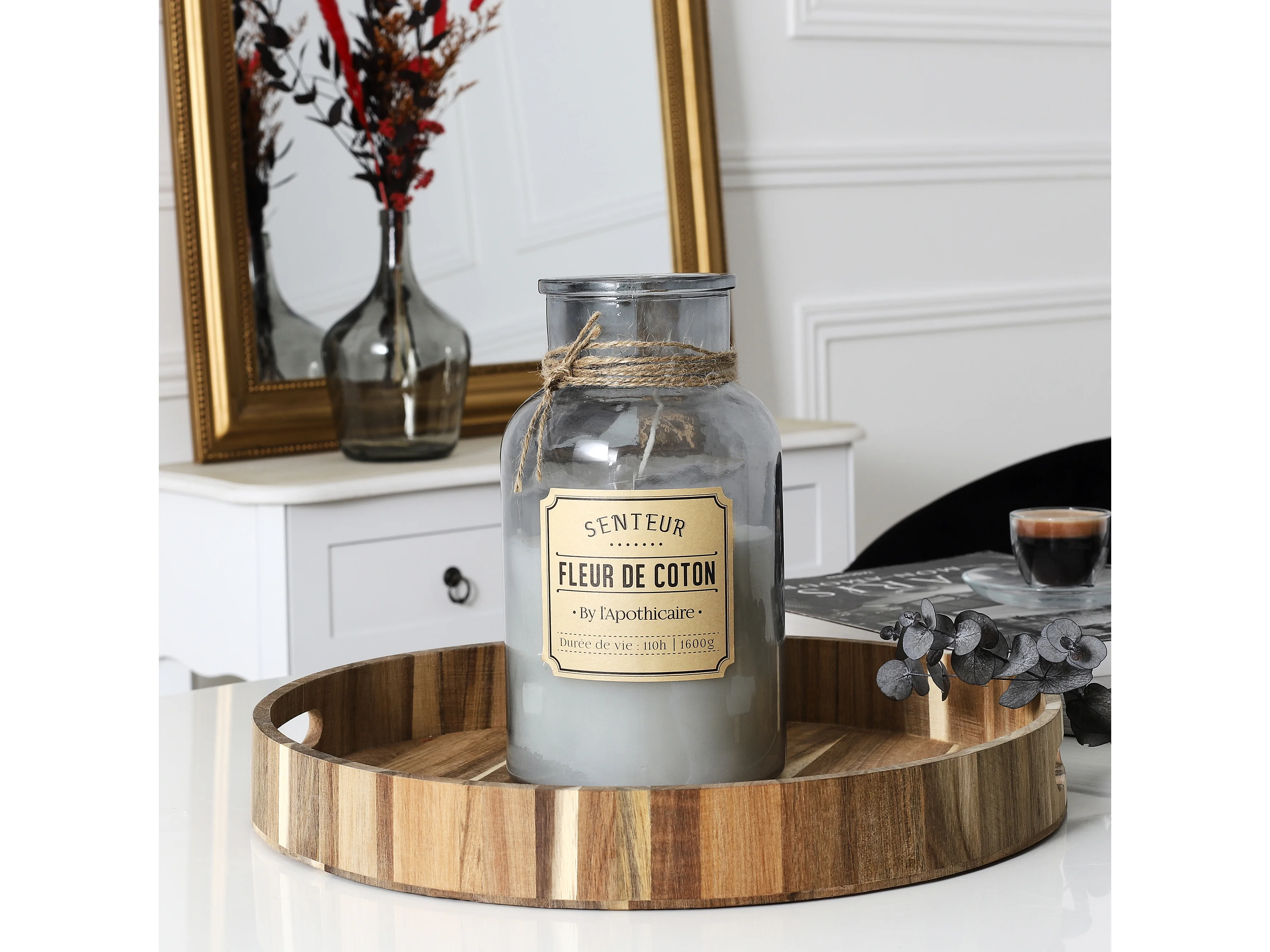 Bougie Parfumee Fleur Coton Apothicaire H25.5cm Blanc, Gris