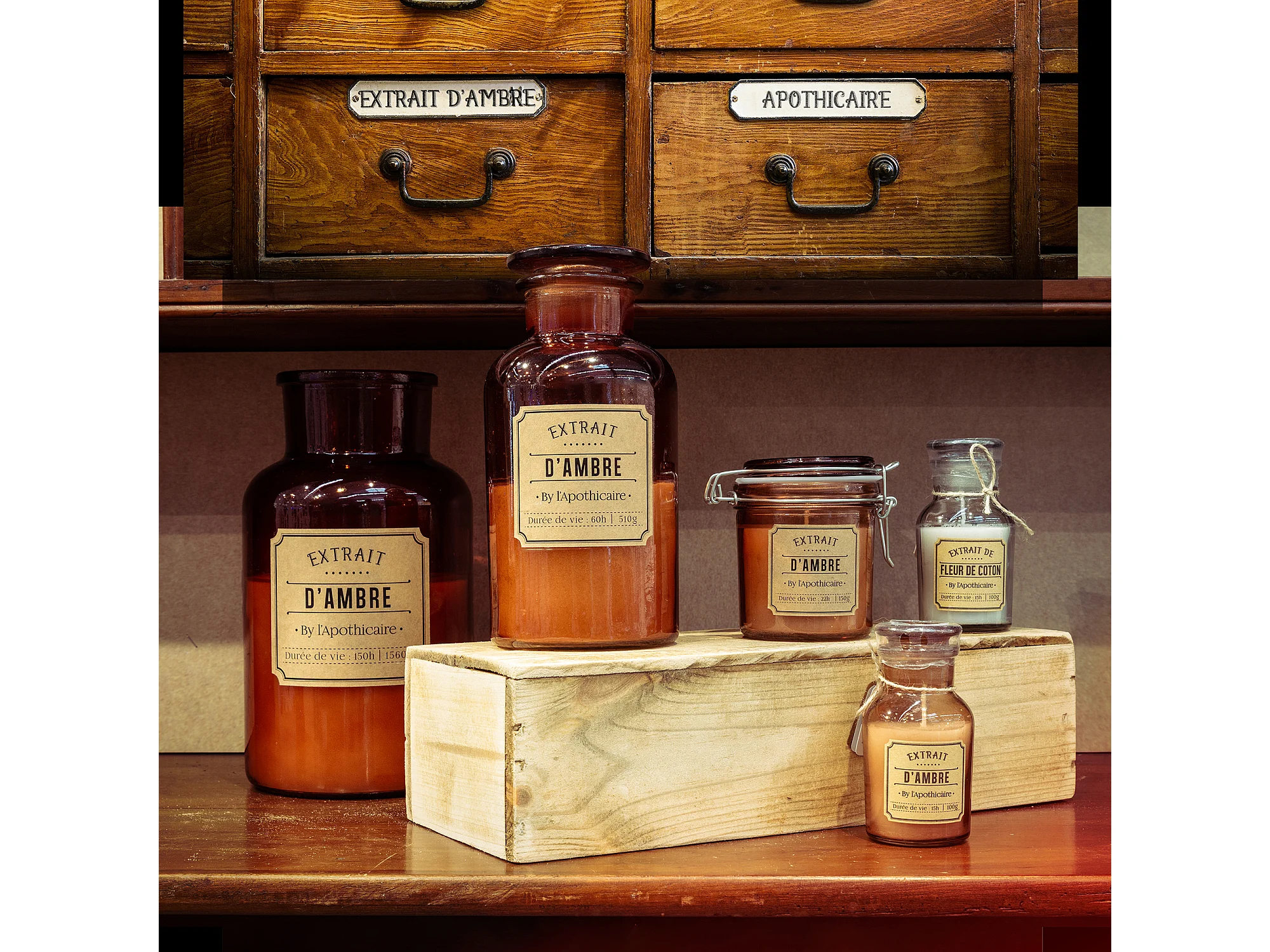 Bougie Parfumee Ambre Apothicaire H25.5cm Marron