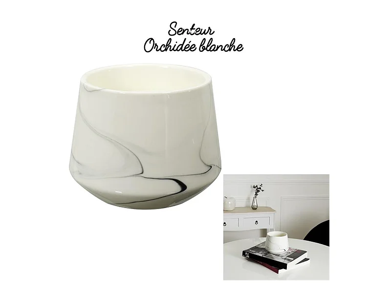 Bougie Parfumee Marbree Blanche H13.5cm Blanc