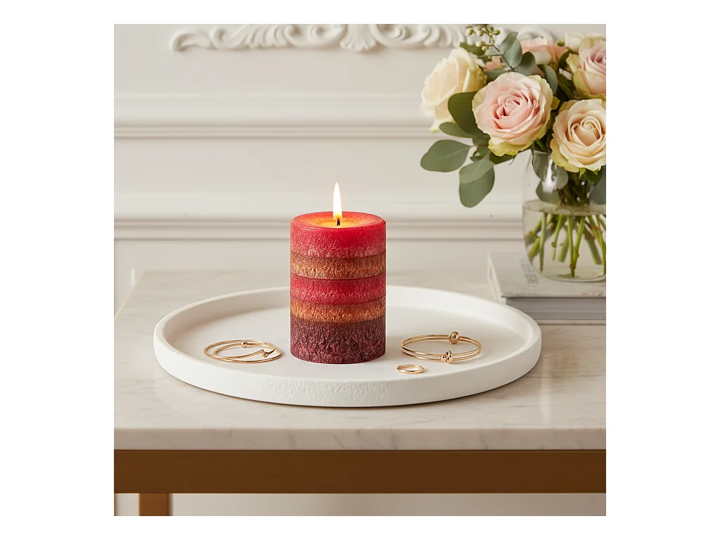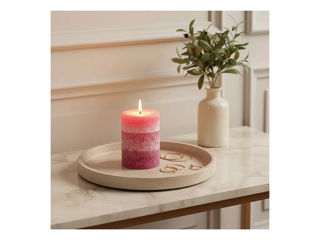 Bougie Pilier Ronde Déco "Rustique" 10cm Bleu Paon