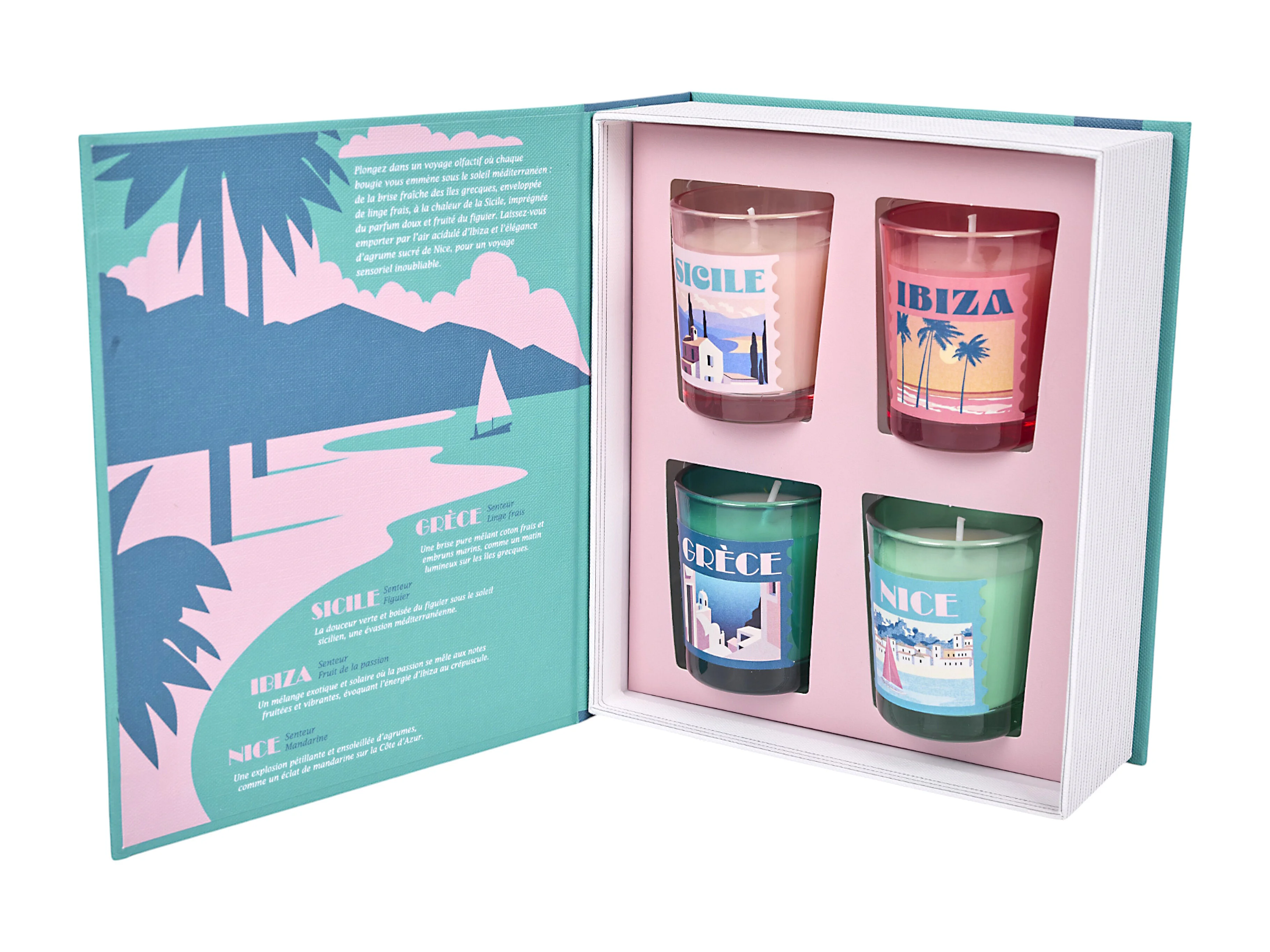 Bougie Parfumee X4 Coffret Voyage Bleu, Violet, Rose, Gris